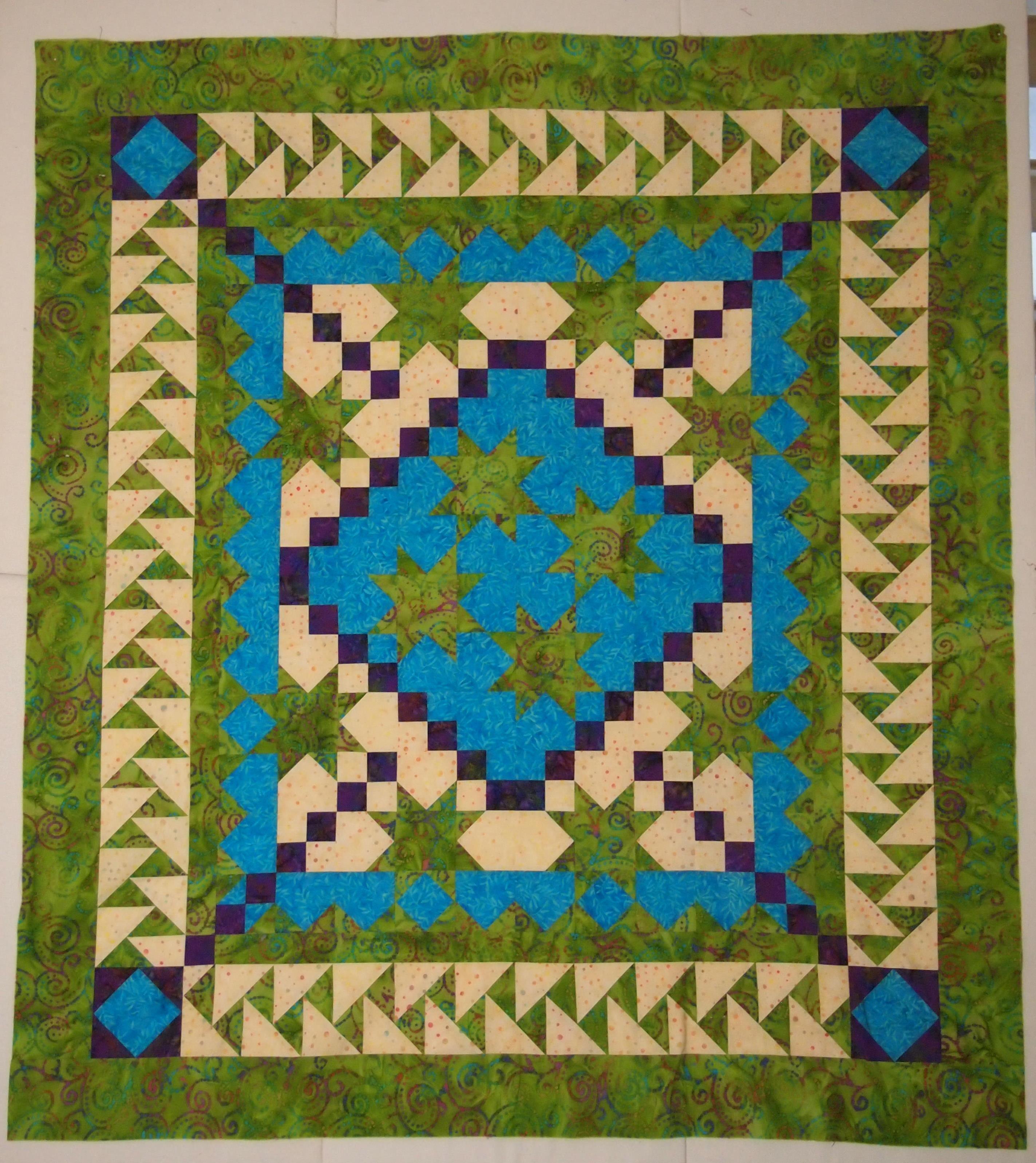 I have been quilting for 10 years so I do have some skills. I made this top in about 10 days. I screwed up when I was cutting out the migrating geese and to go buy more fabric. I cut the pieces too large and when making pieced borders you must be precise.