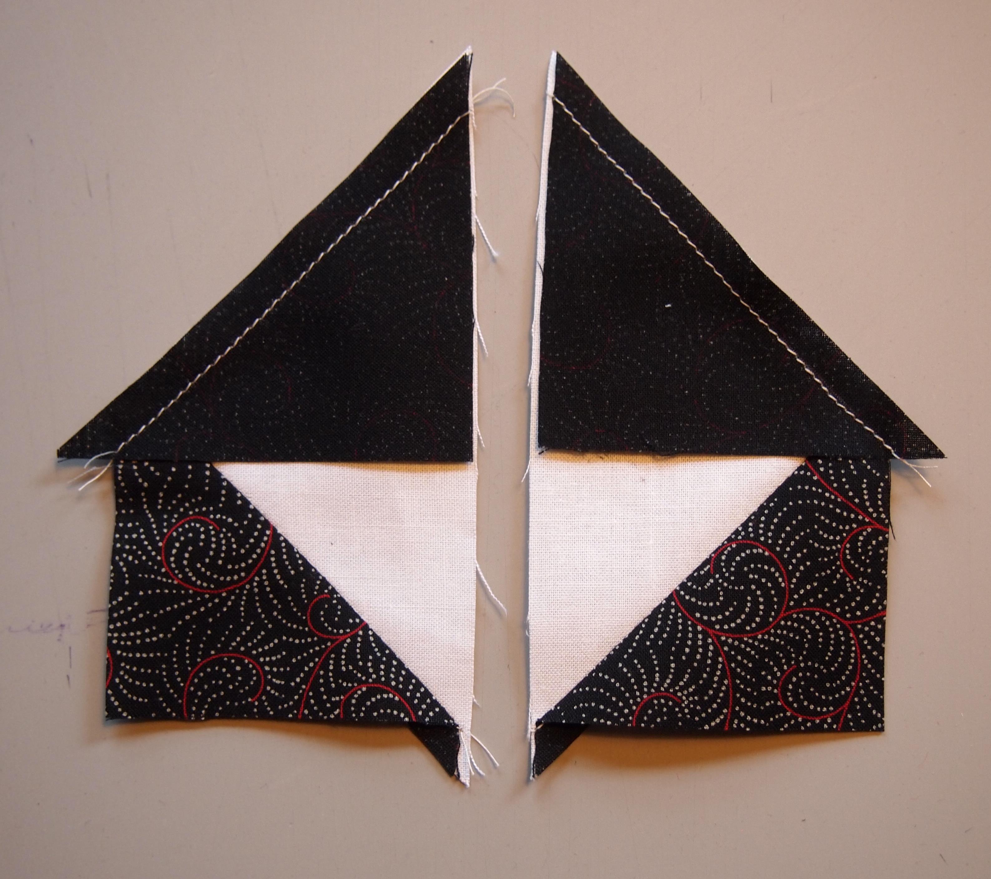 Sew on the lines, cut apart and press toward the small triangles. (See Wing Clipper instructions for complete info)