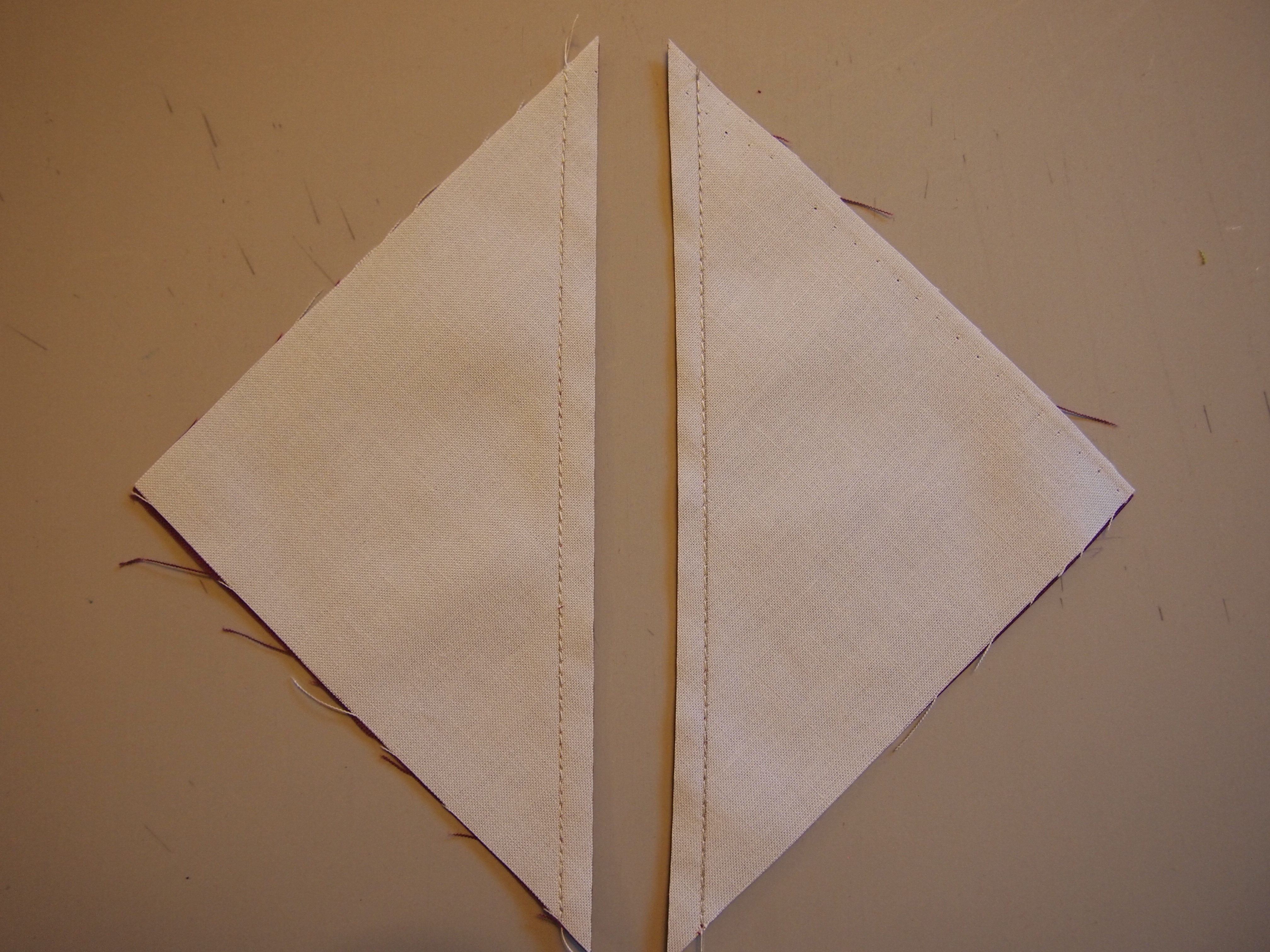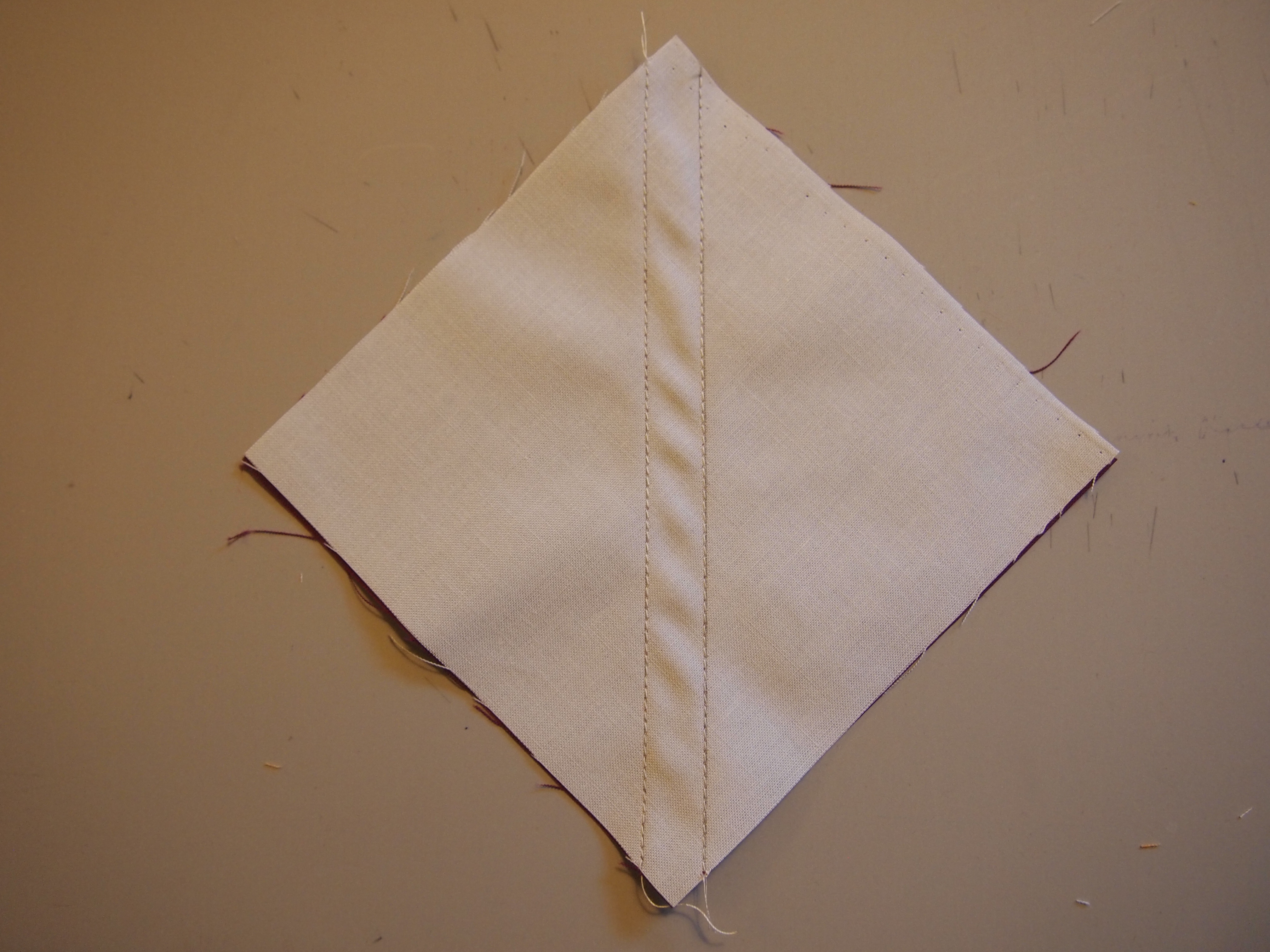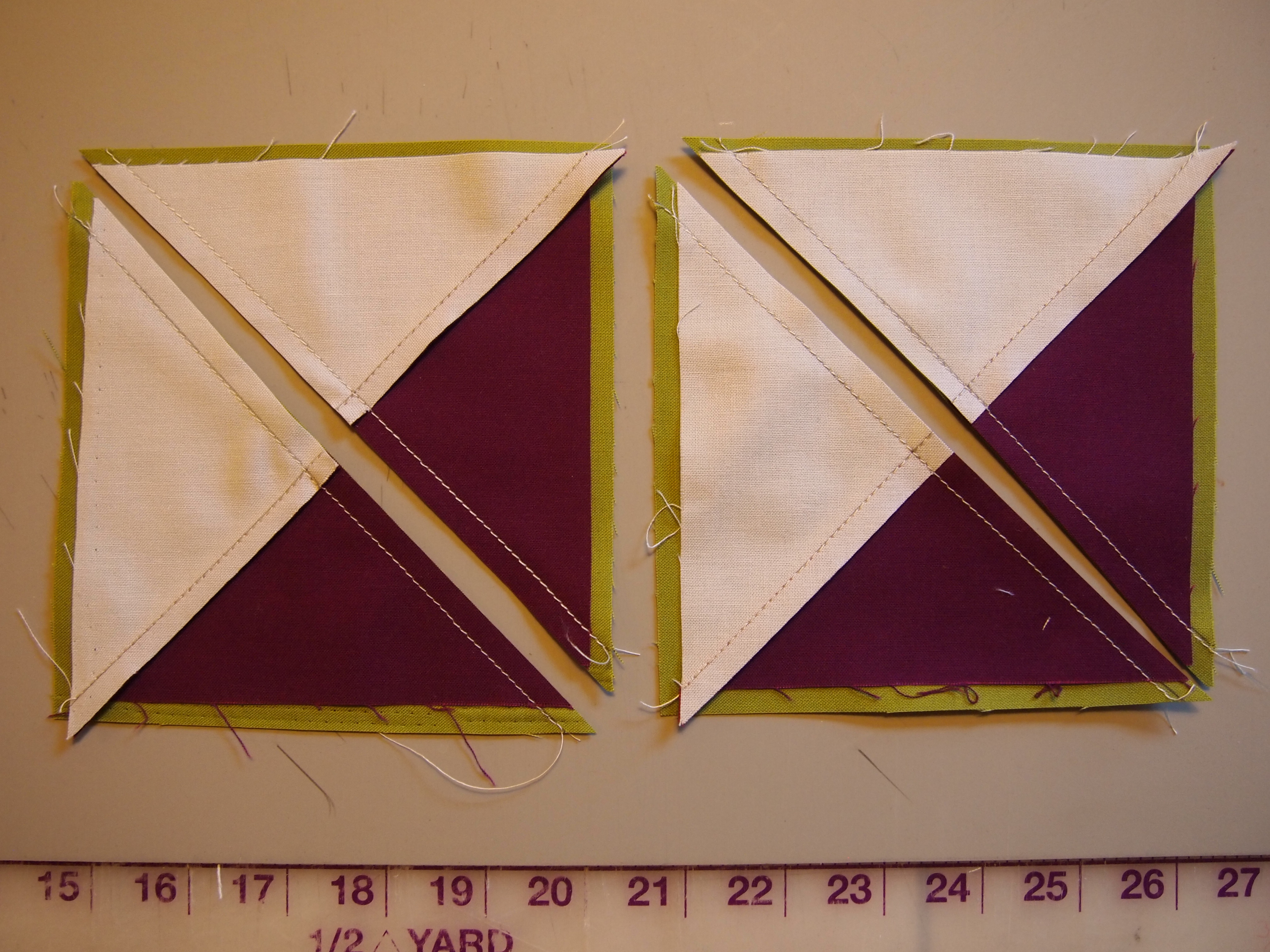 Press toward the larger triangle and square up to 4 1/2″ using your Tucker Trimmer I.