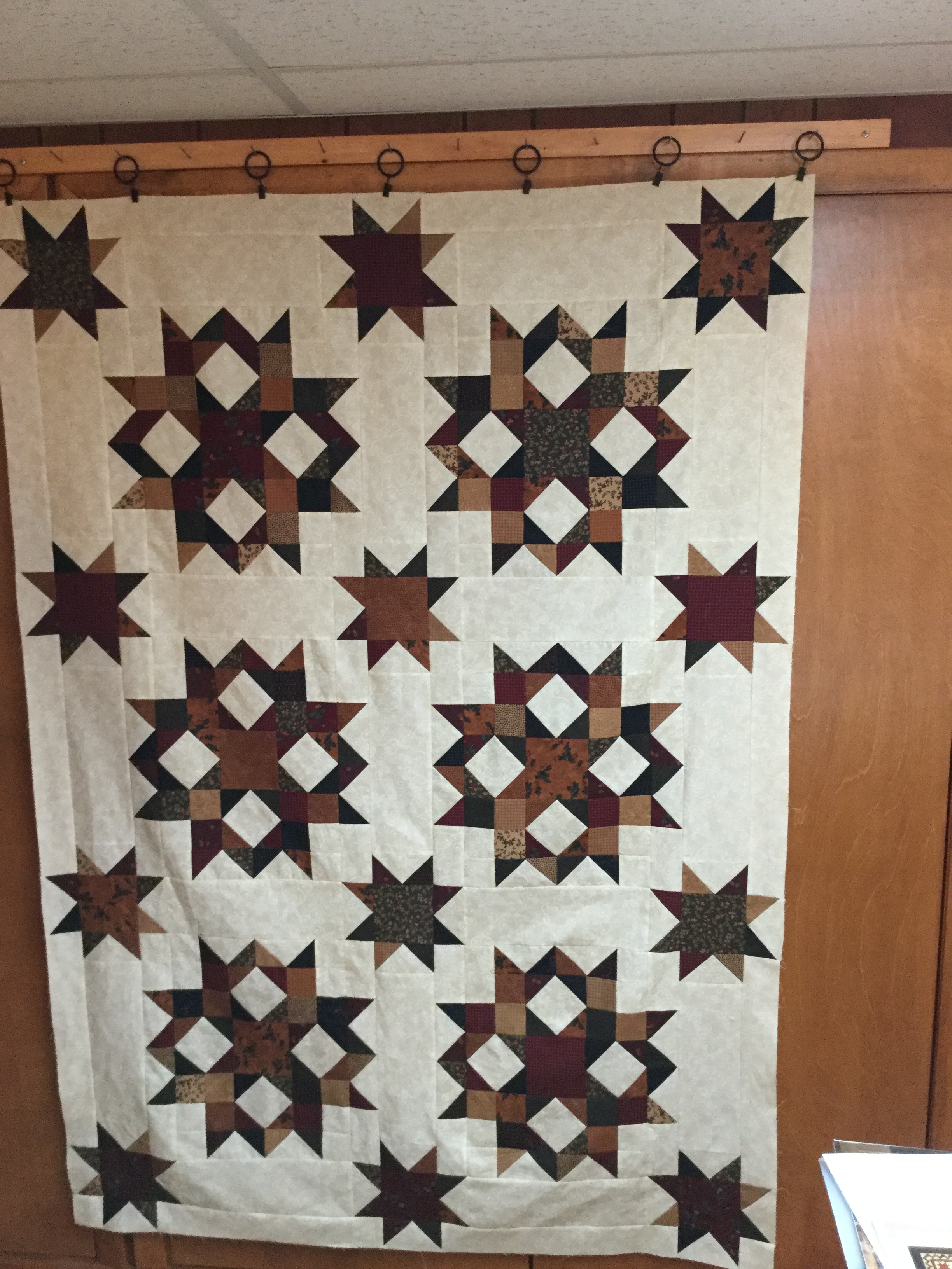 But I decide to finish it anyway and I’m sure glad I did. I call it Jackie’s Folly. I still love it. This is a great pattern no matter how you finish it. The quilt measures 72″ by 92″.
