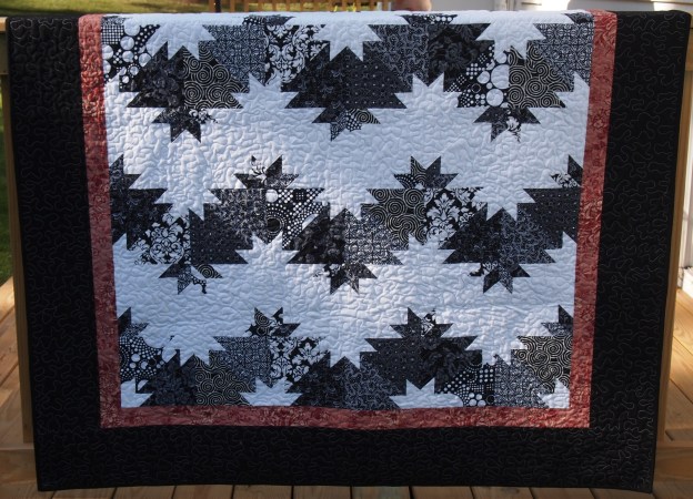 Tuck always has to get in the picture. Hidden Treasures makes throw size quilts using the Rapid Fire Hunter Star Petite Tool by Deb Tucker. Deb is currently working on her second Hunter Star book “Royal Treasures” that uses the Rapid Fire Hunter Star Large tool and will feature Queen & King size quilts. I am fortunate to have one my quilts in that book.