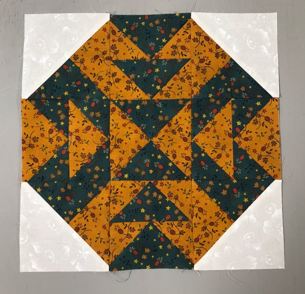 This is a great block.  04 Capital T Variation requires the use of your Wing Clipper I, & Tucker Trimmer I.  You’ll be making flying geese, combination units and quarter square triangles.  The supply list shows 3 block options. I chose the first 3 color combination because I’m using some Kim Diehl fabric with a cream background for all my BlockBuster’s so I can make them into a cohesive quilt when I’m done.  You have 3 size choices.  I chose to make mine 12″ blocks with 4″ finished units.
