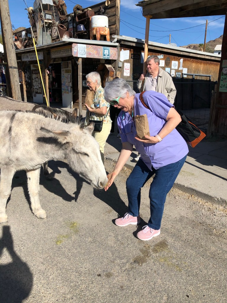 I even got to meet “Walter the Orphan Donkey” from Oatman, Arizona! Walter was abandoned by his mother and this family brought him home, saved his life and are now raising him. Walter thinks he is a German Shepherd dog and even uses the dog door! You can follow Walter on Facebook. The donkeys roam around the town waiting for us to feed them.