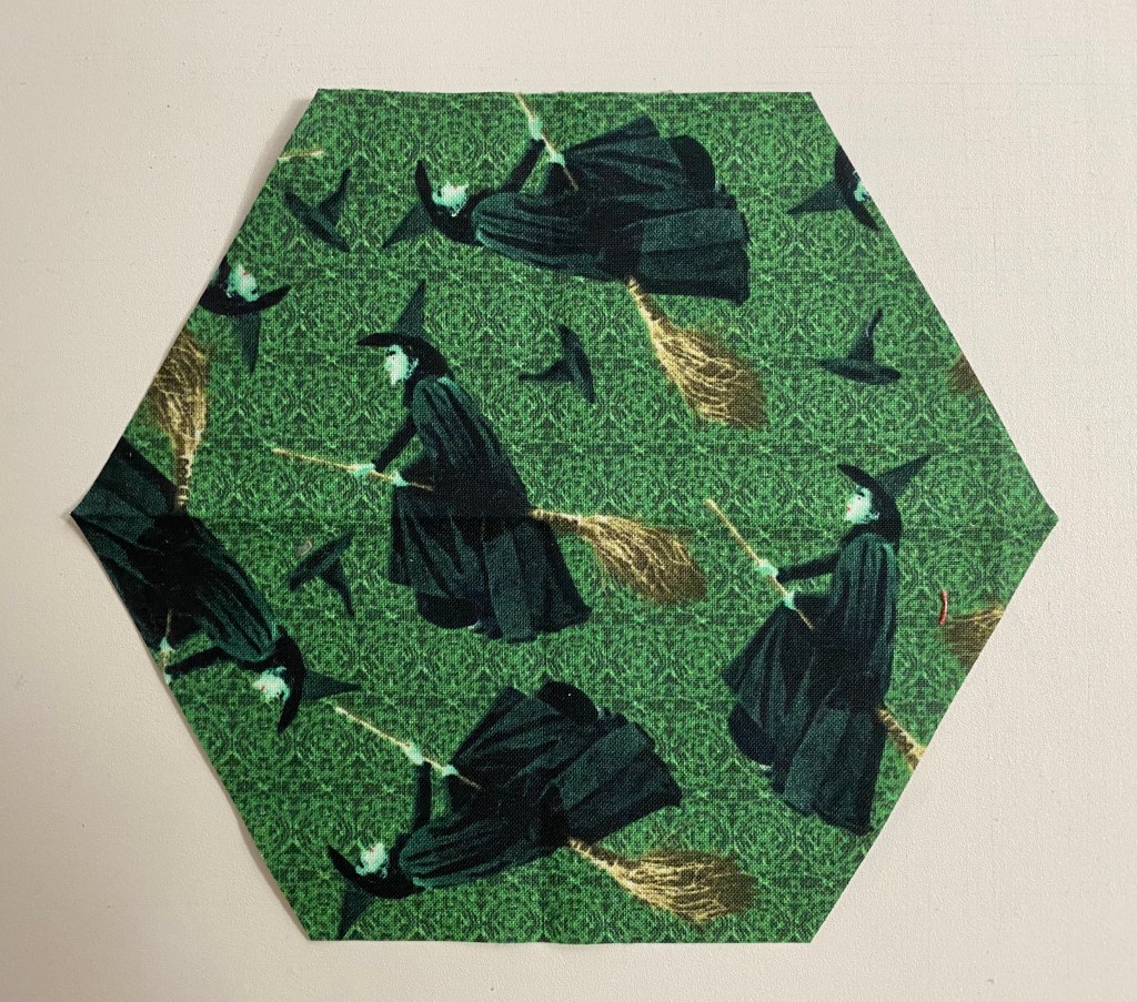 Cutting Whole Hexagons: I wanted a block that contained the Emerald City. I forgot to take a picture while I cut it, so the instructions below use a different fabric.