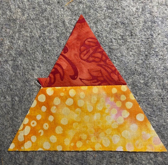 Align one edge of the triangle with the top of the trapezoid, matching the flat edge of the triangle to the top of the trapezoid as shown above.