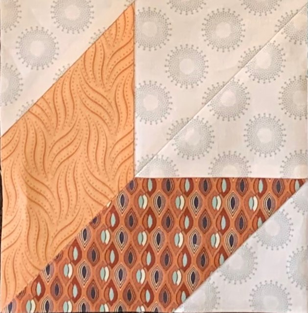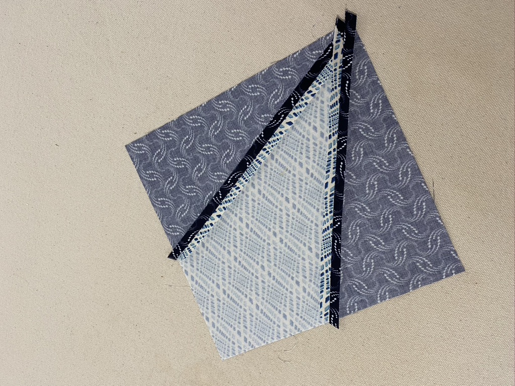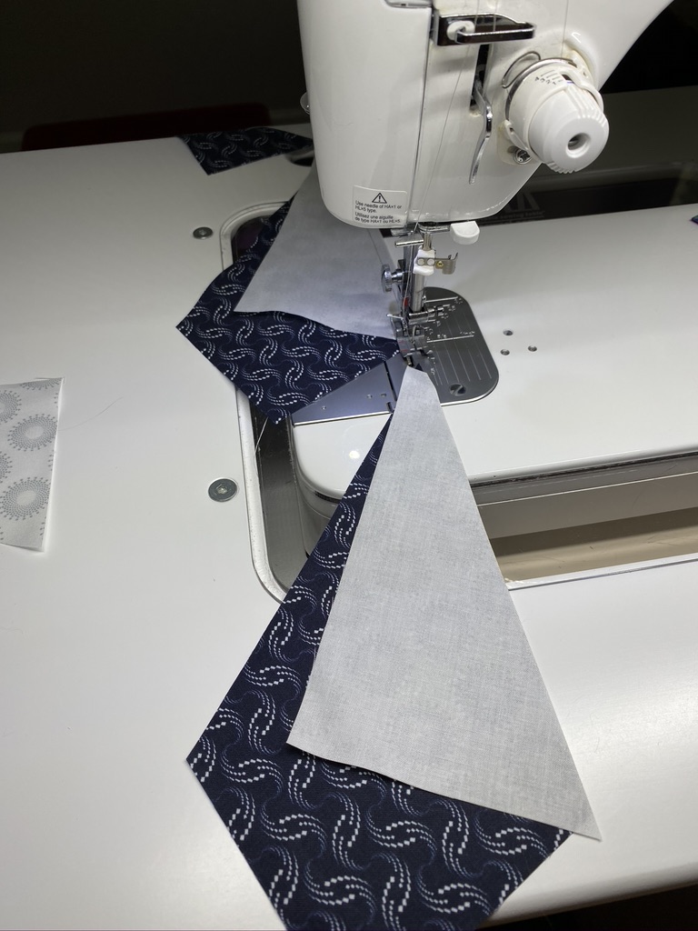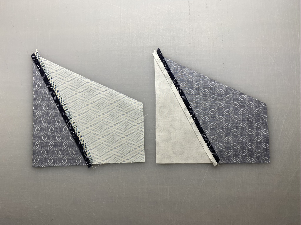 Step 7 – Stitch the second side triangle to the other side of each center beam. Press each seam open