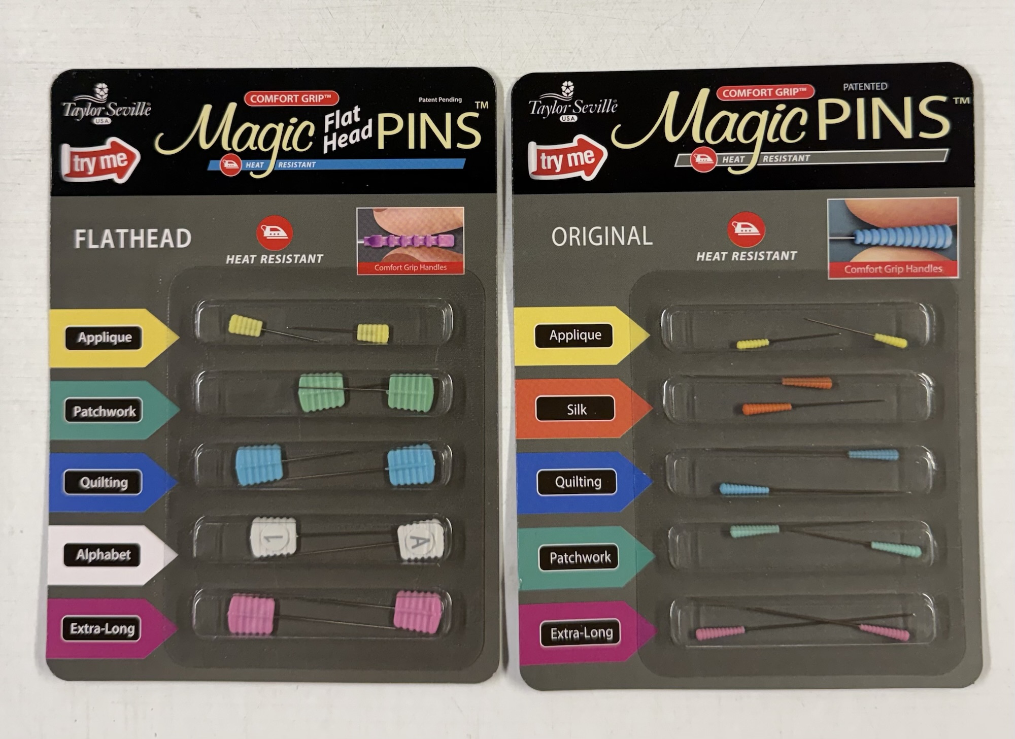 I have the Extra Long & Quilting Magic Pins, which I use. I did not know Taylor Seville also had Applique, Silk and Patchwork Magic Pins.