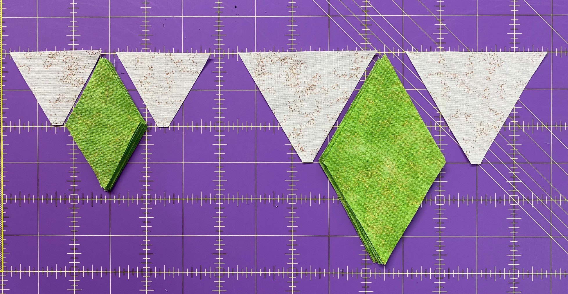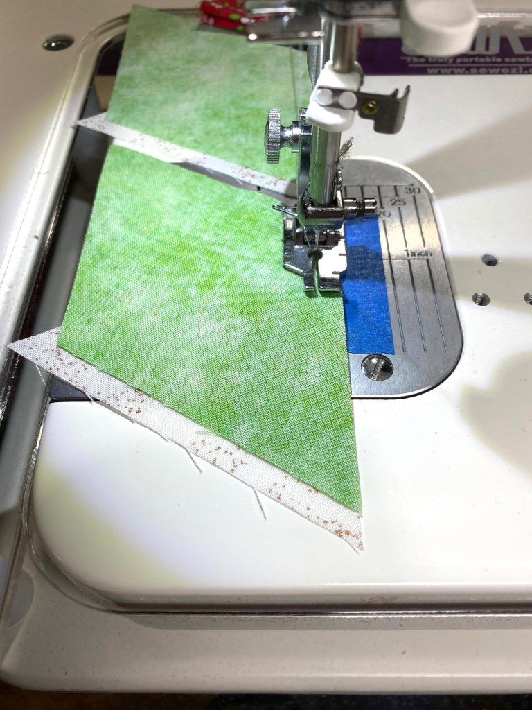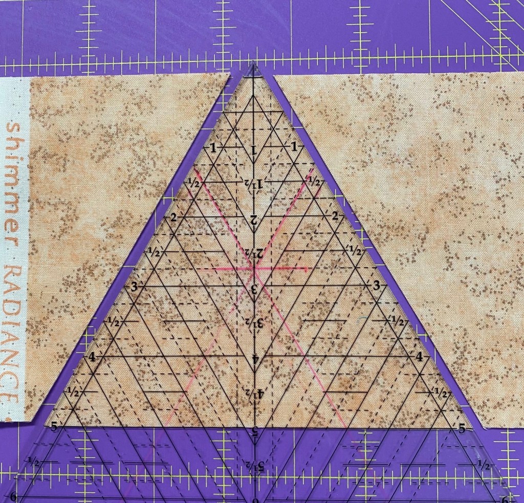 Radioactive uses Star 60 units for 12″ and 6″ triangle blocks. First I cut my side triangles for my 12″ Star 60 units, then the 6″ units.