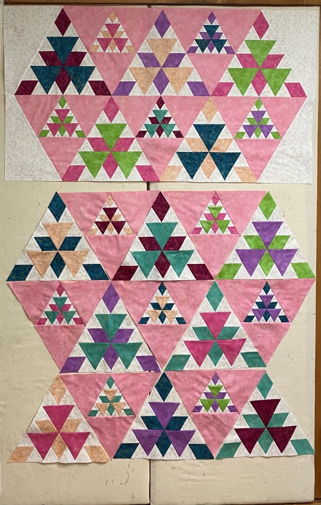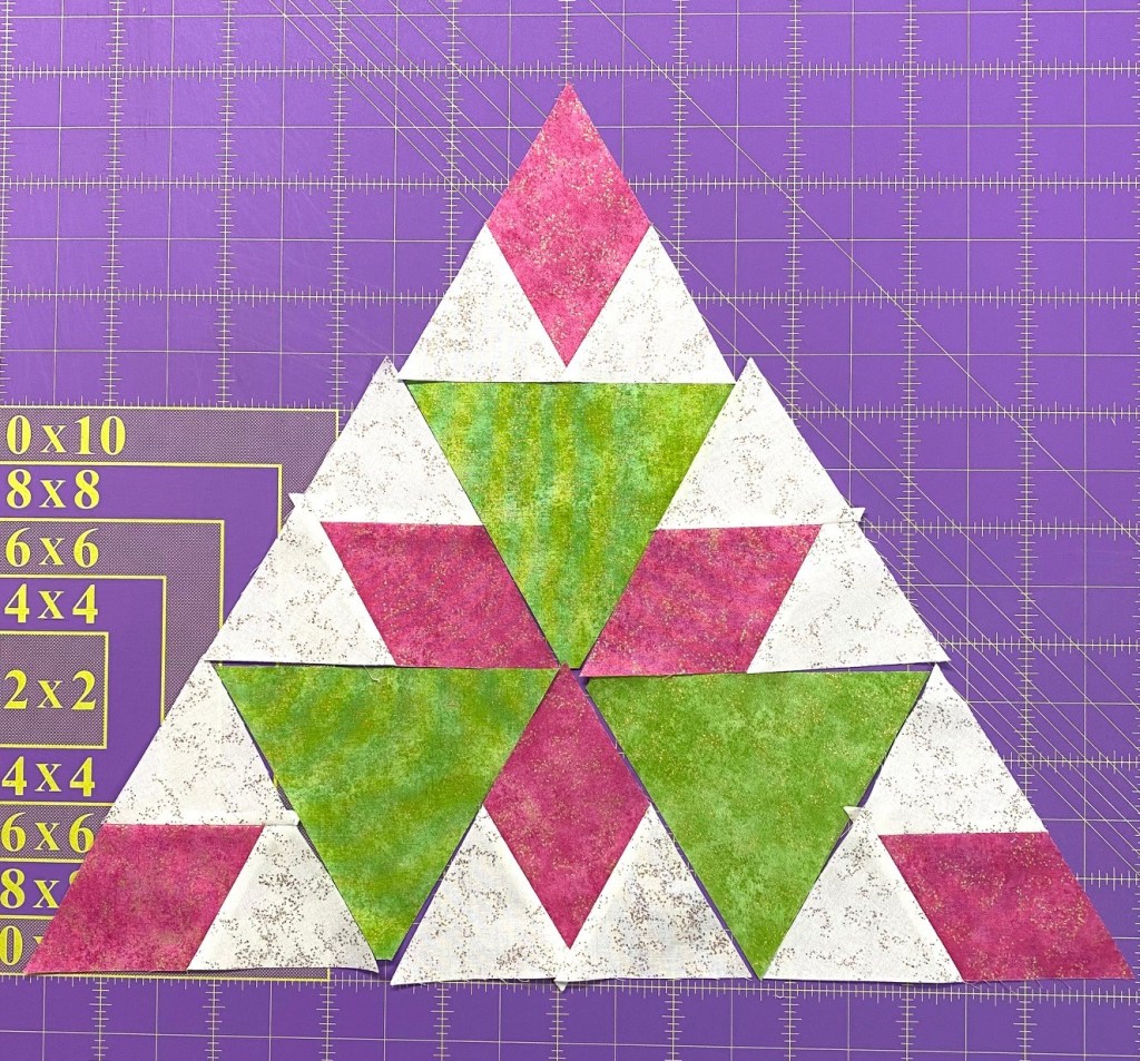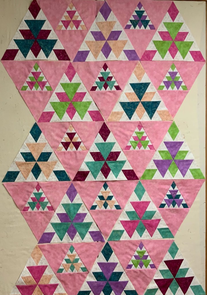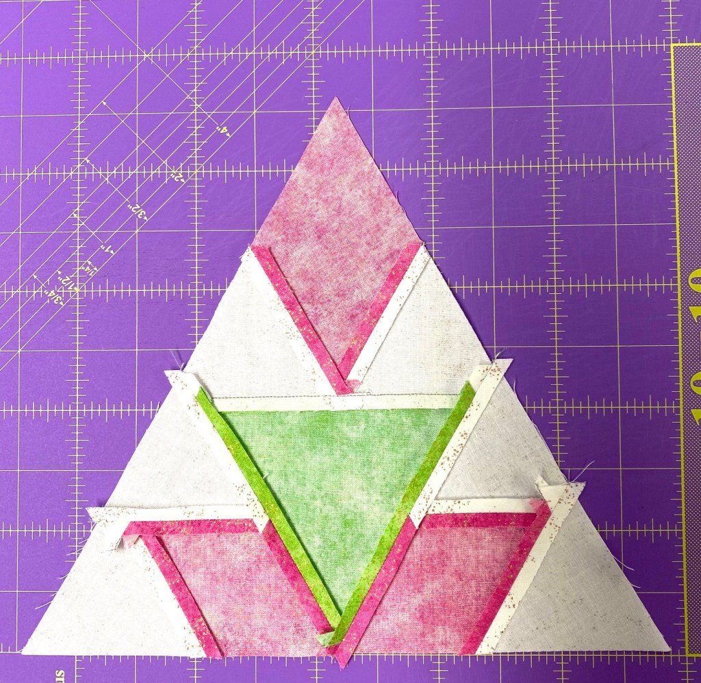 Stitch triangles into rows, then add the setting triangles on both ends.