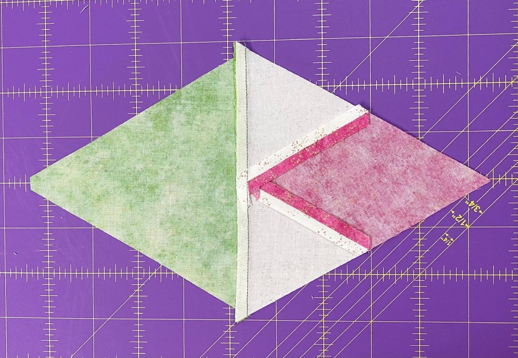 With the diamond on top, stitch along the matched edges. Press seams open.