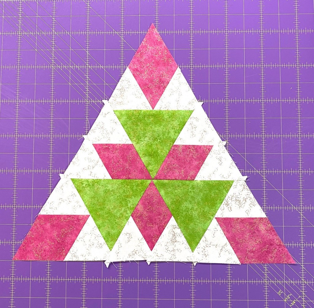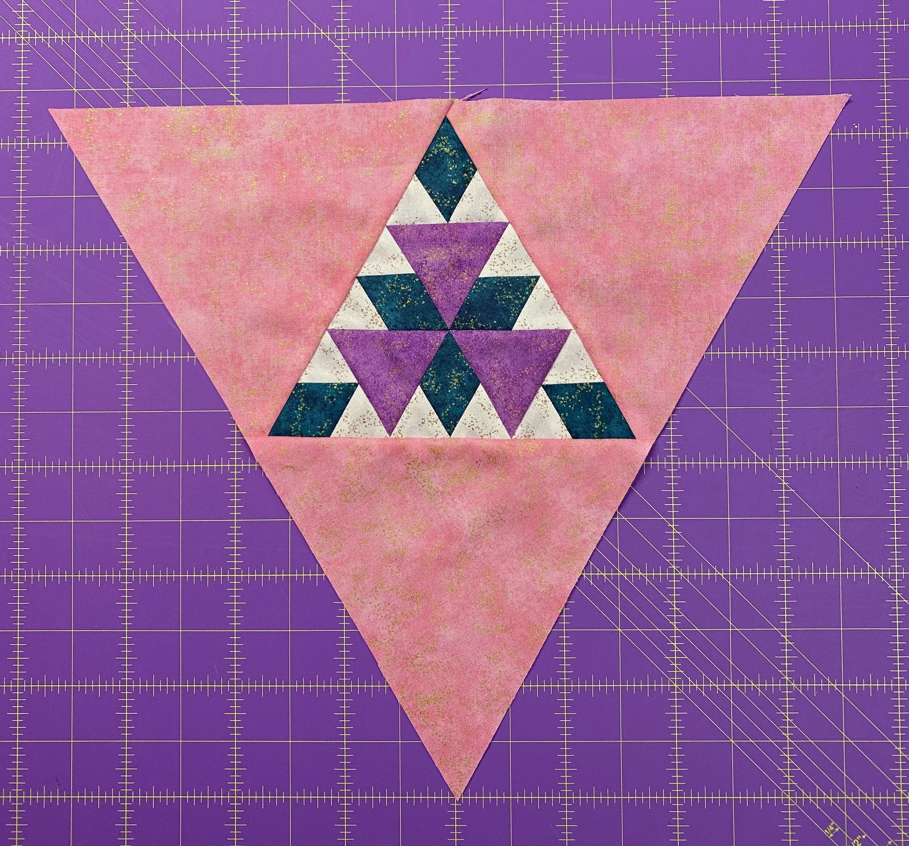 Align and center each accent Companion Triangle with the 6” pieced block. Stitch with an accurate ¼” seam. Press all seams toward the Companion Triangles.