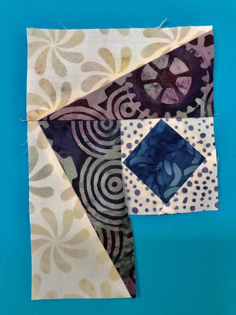 Stitch a background rectangle with each Lemoyne quarter/split rects unit as shown. Follow block assembly instruction in the BlockBuster #29 pattern.