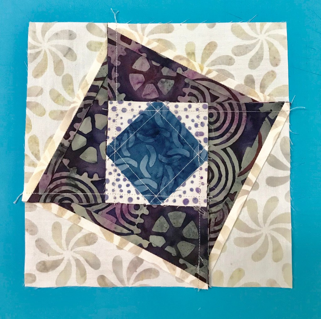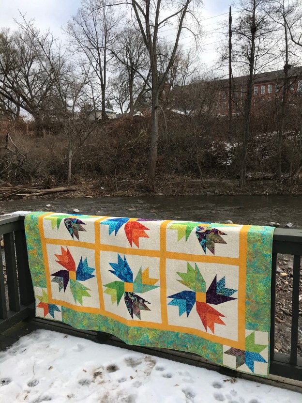 But I discovered I had enough units to make 9 blocks with left over Lemoyne quarters for the use in the outer border. Quilt measures 83″ x 83″.