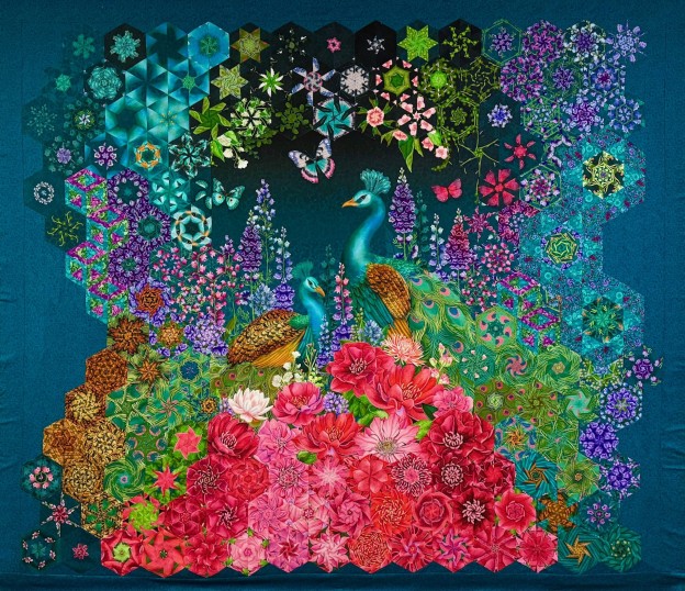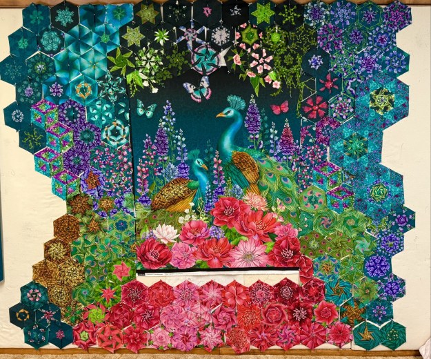All stitched together, tweaked and borders added. Wild Garden measures 85″ x 74″.