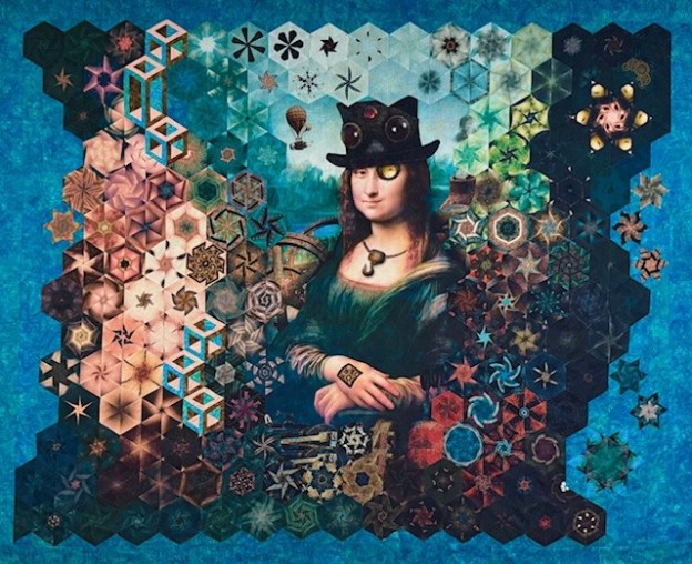 Steampunk Mona Lisa is from Rubin Design Studio and eQuilter. She measures 29″ x 44″.