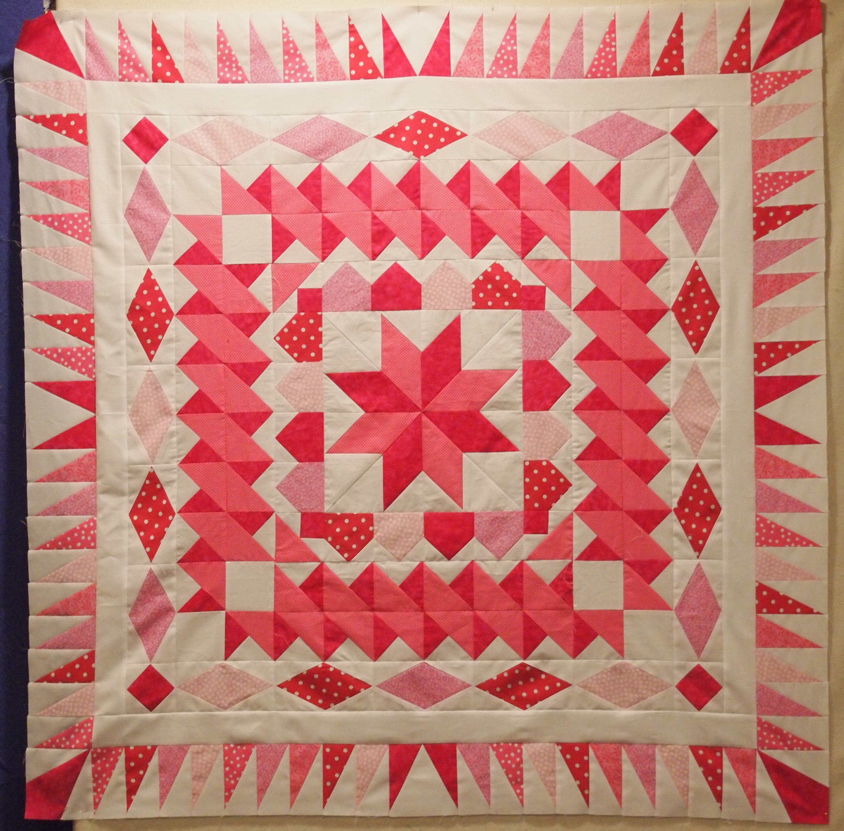 I only have one block done so far. But with this great Kaffe Fassett fabric I can’t wait to finish it. This is a 12″ finished block. The Large Square Squared tool made the process easy. I would never have guessed I could make a pineapple quilt so perfect with out paper piecing! The pattern gives you the choice of Lap, Twin or Queen size quilts.