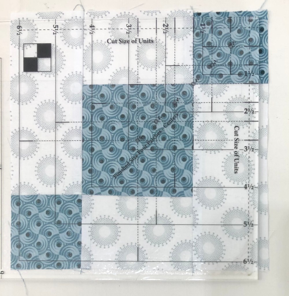 Once you have completed and trimmed 16 Uneven Chain units, label a paper plate “Unit A” Uneven Chains and set aside. Congratulations, month is done and you have learned to use the Four Patch Square Up tool.