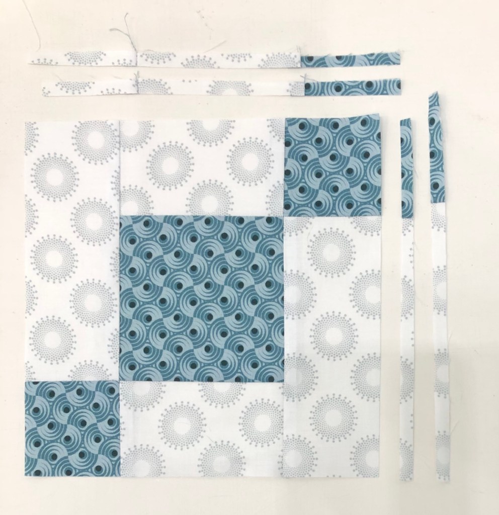 Once all the pieces were stitched together I decided I needed to add a 3″ outer border so all the units appear to be floating.