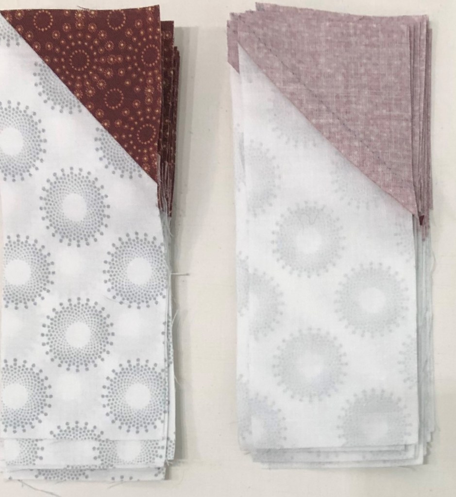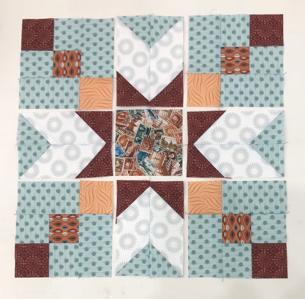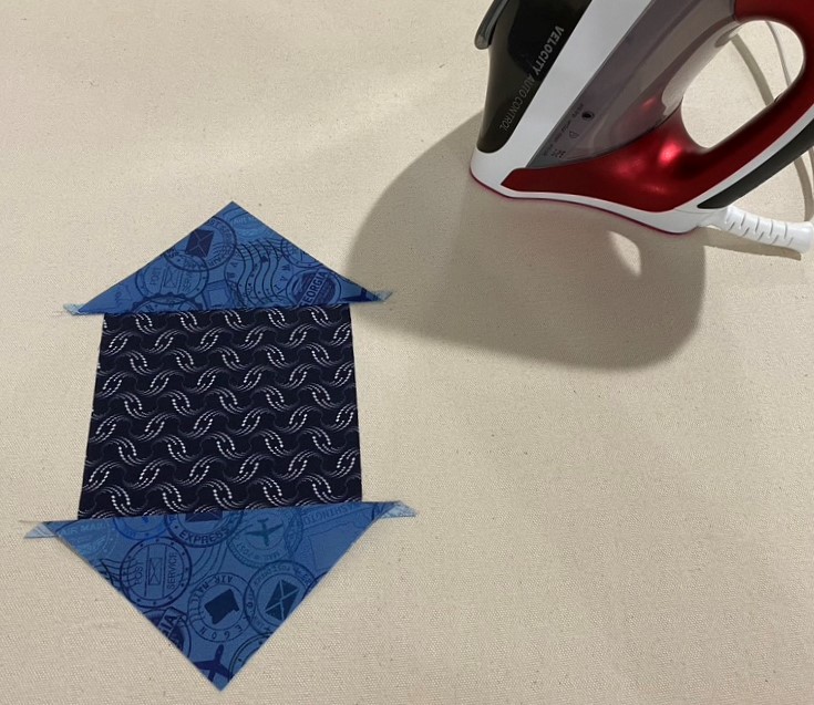 Step 2 – Stitch the sections together into rows, press the seams open. Stitch the rows together to create the quilt center.