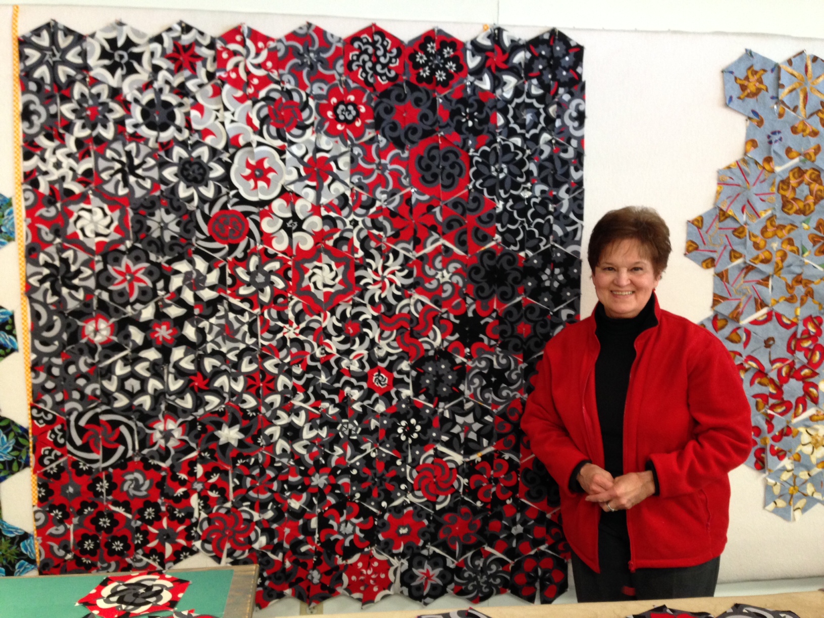Stitch small wedges to the diamonds right sides together as show above. Press toward the Diamonds.