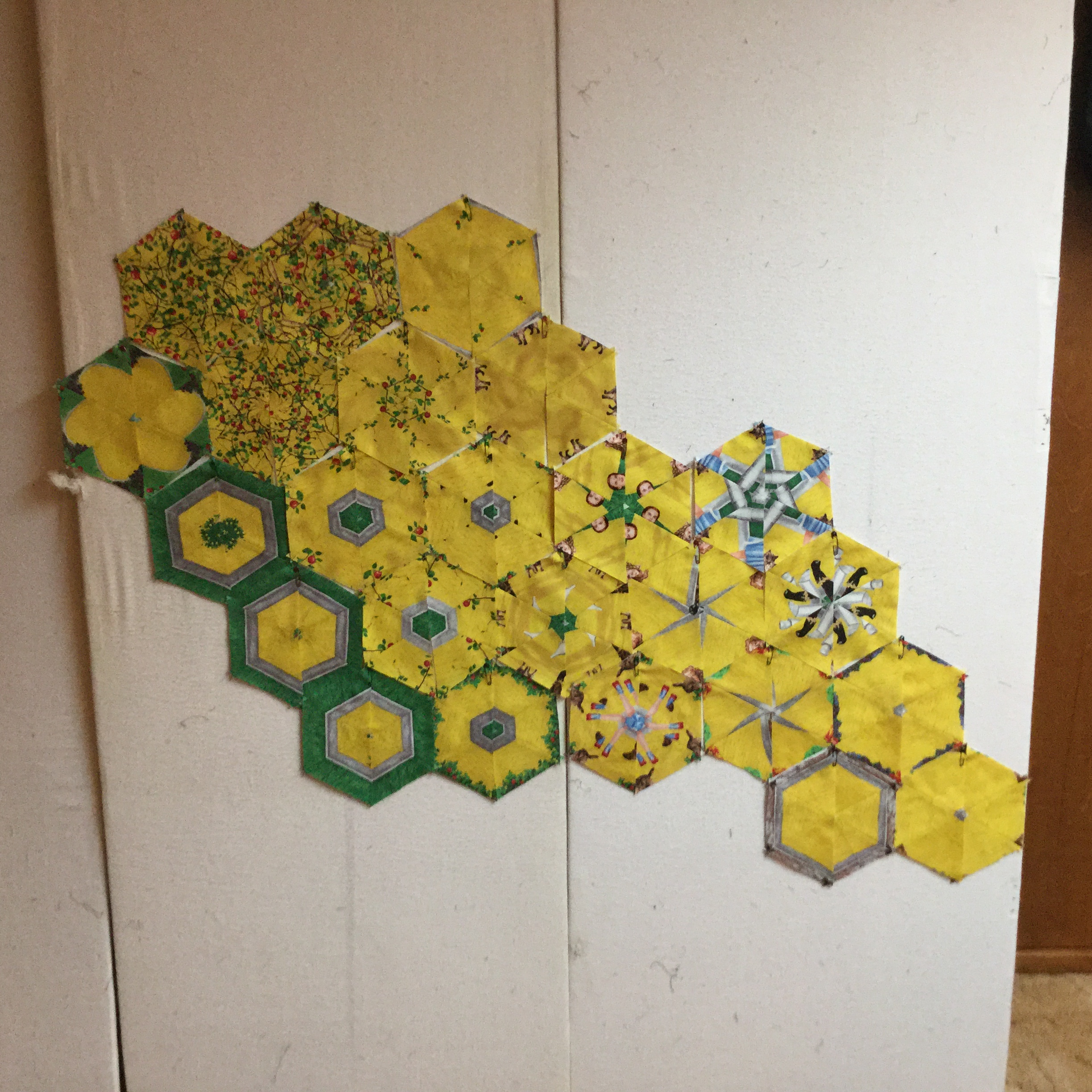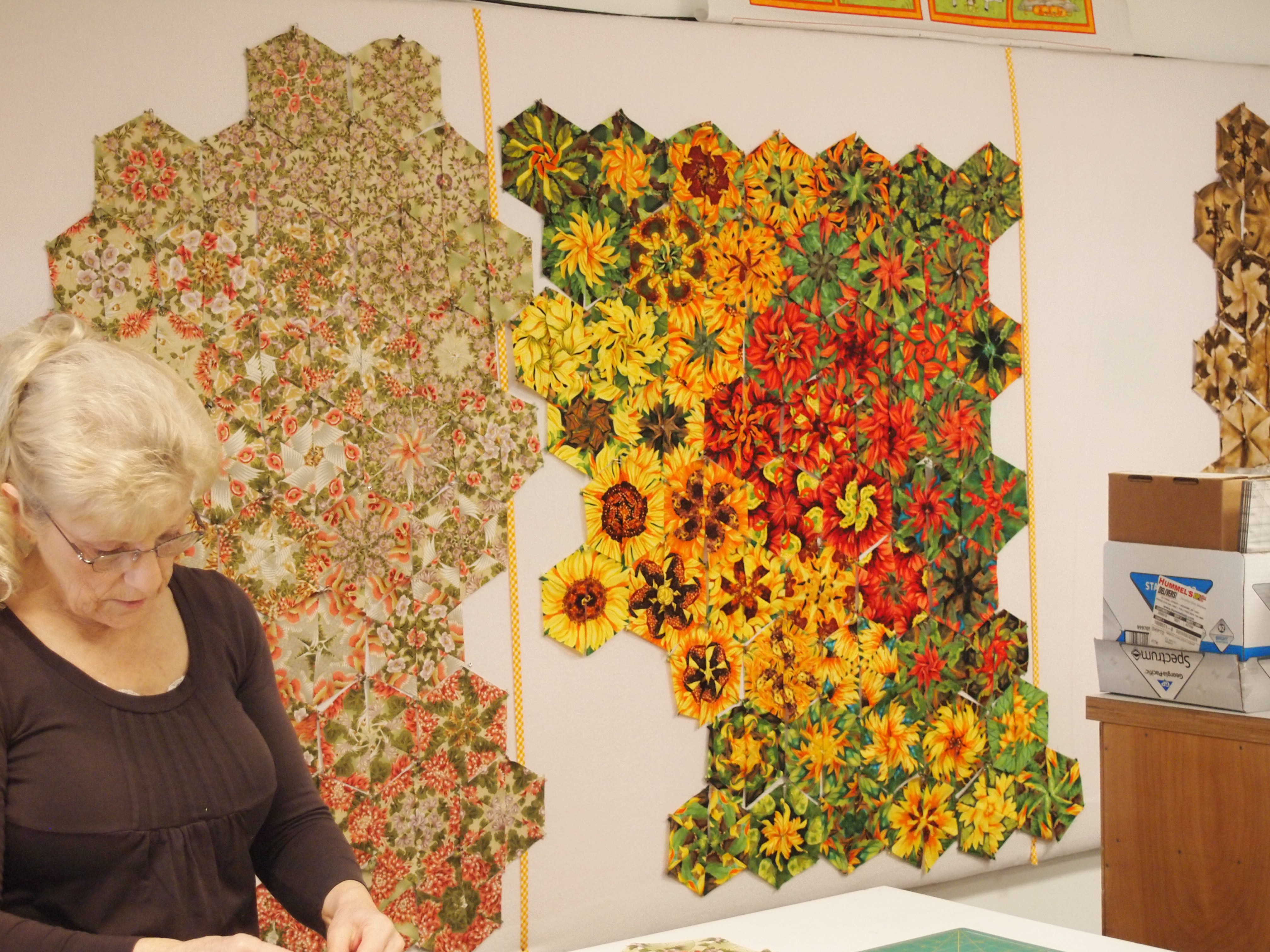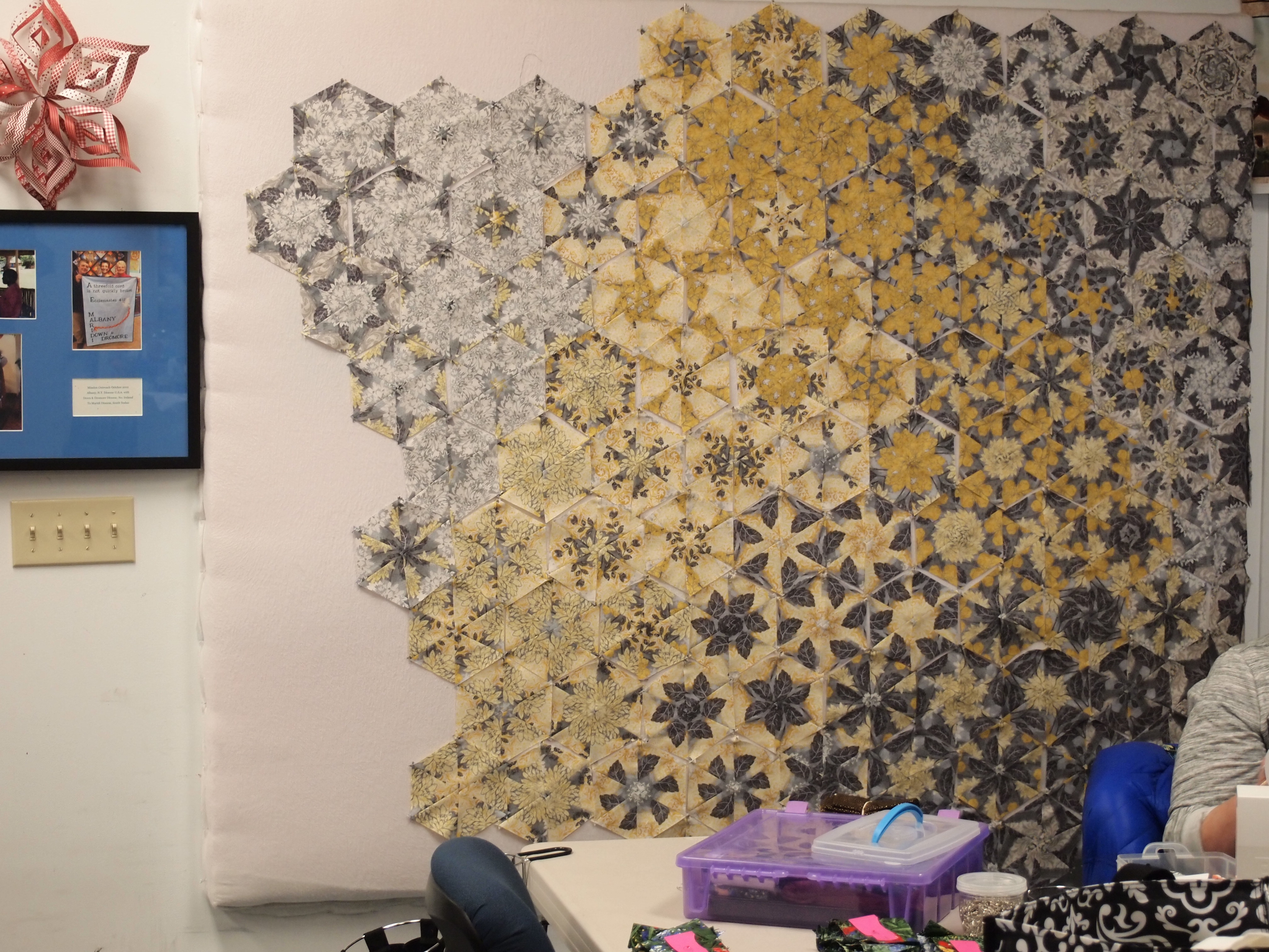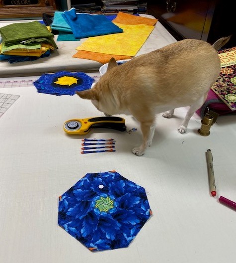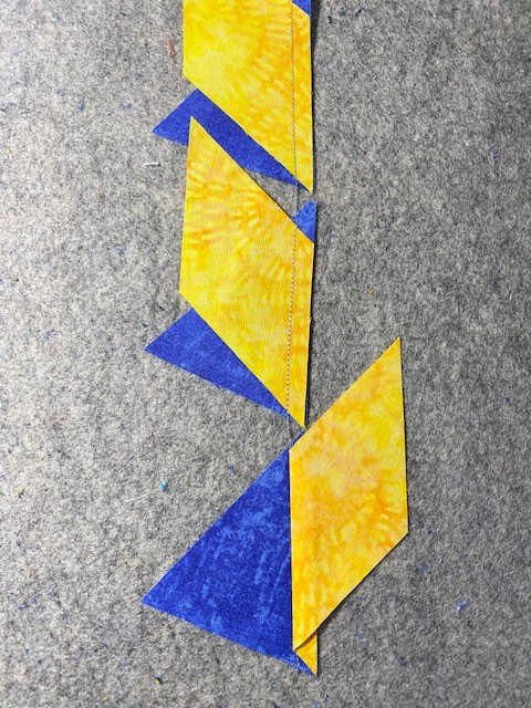 Step 1.06 – Lay out the Diamonds and Small Wedges as shown. I am making two color diamonds first I laid out the Yellow diamonds with the blue small wedges.