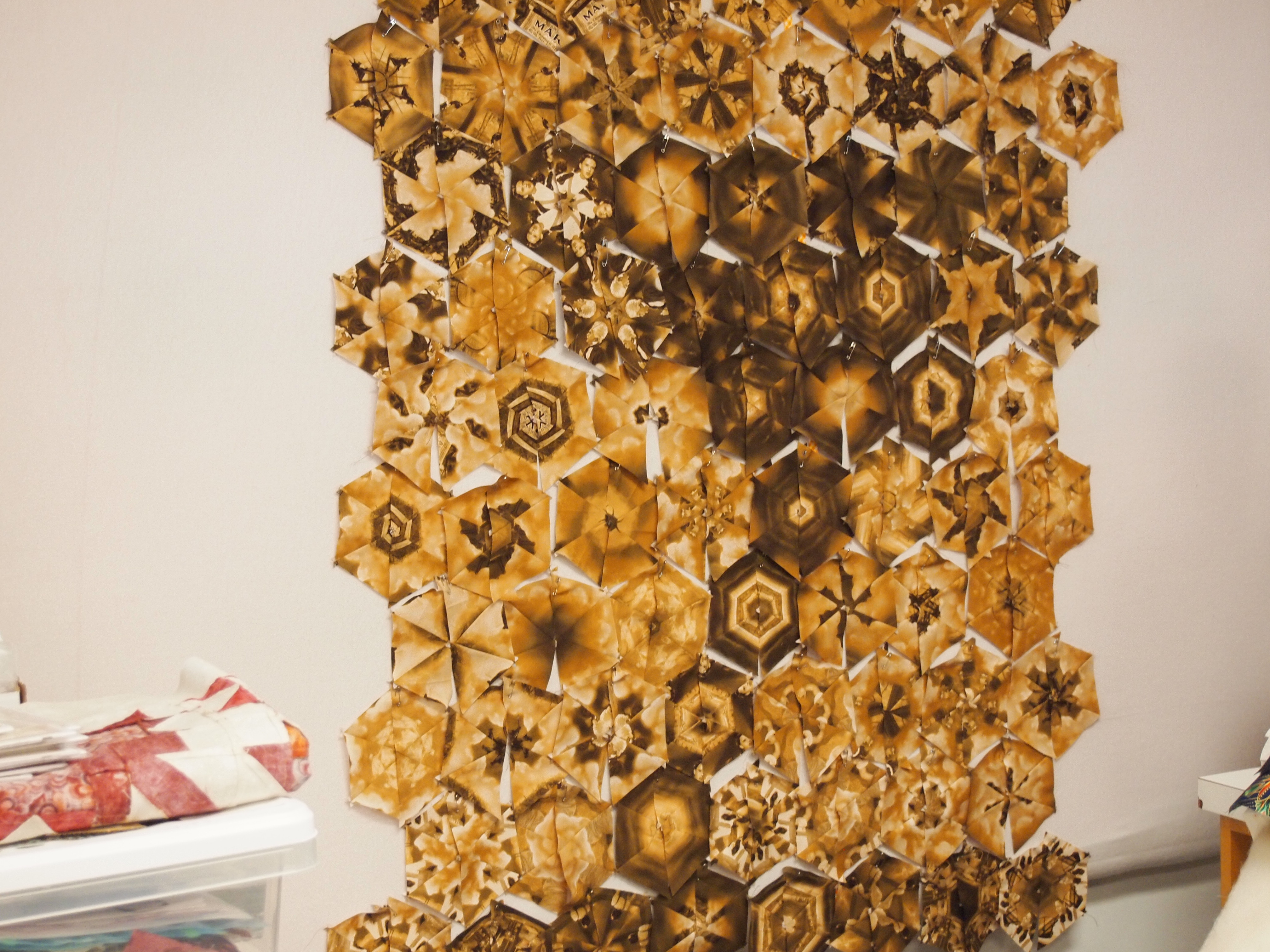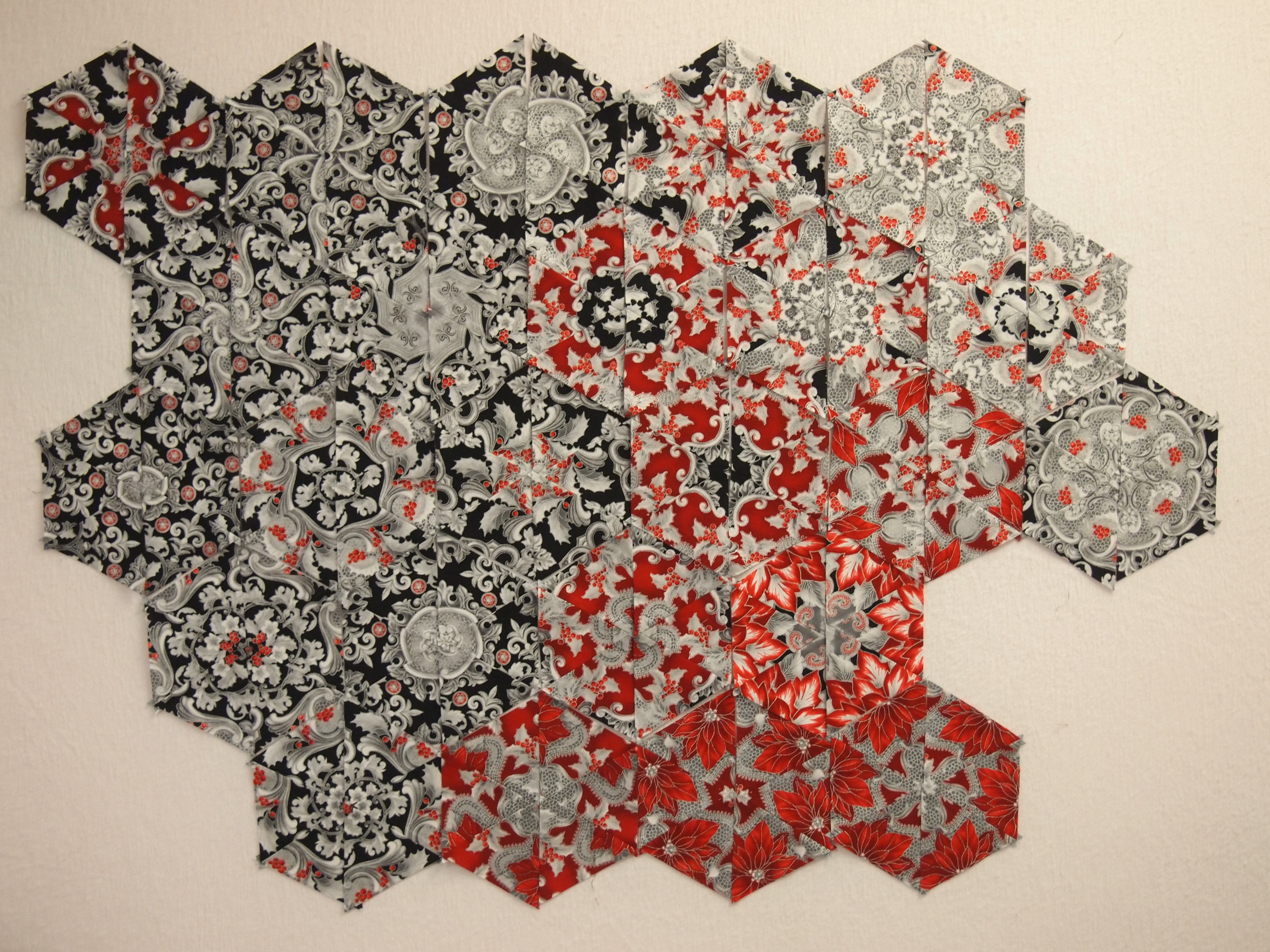 Step 1.15 – Stitch quarters in halves, then stitch halves together, pressing seams open.