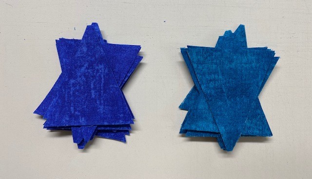 When making an octagonal OBW, we are cutting 8 layers of fabric at once. Our Large Wedge and Corner Square strips are from one fabric. Putting a new blade in your rotary cutter is important!