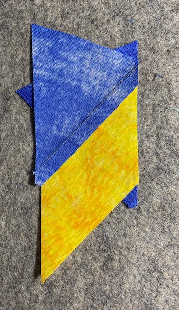 Note: My interpretation is to place a diamond right sides together with a small wedge as show above.