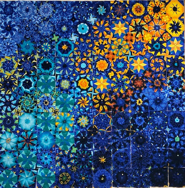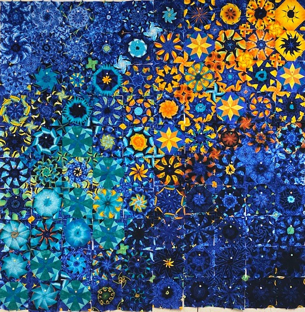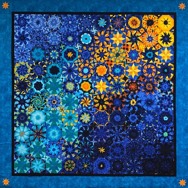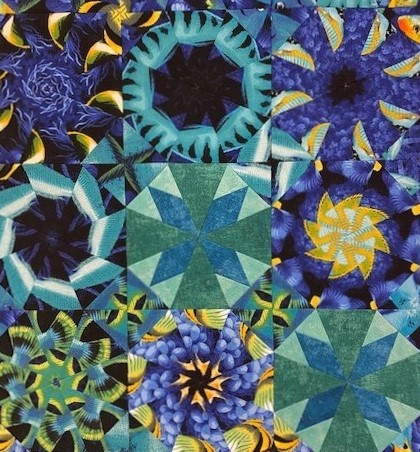 Mixed blocks are made by simply combining Wedge Stars with Large Wedges as shown above. Once I made several Wedge Star Blocks and Mixed Blocks I added them to my other octagons. The fabric choices for my Wedge Stars and Mixed blocks was to strengthen my orange/golds and turquoises.