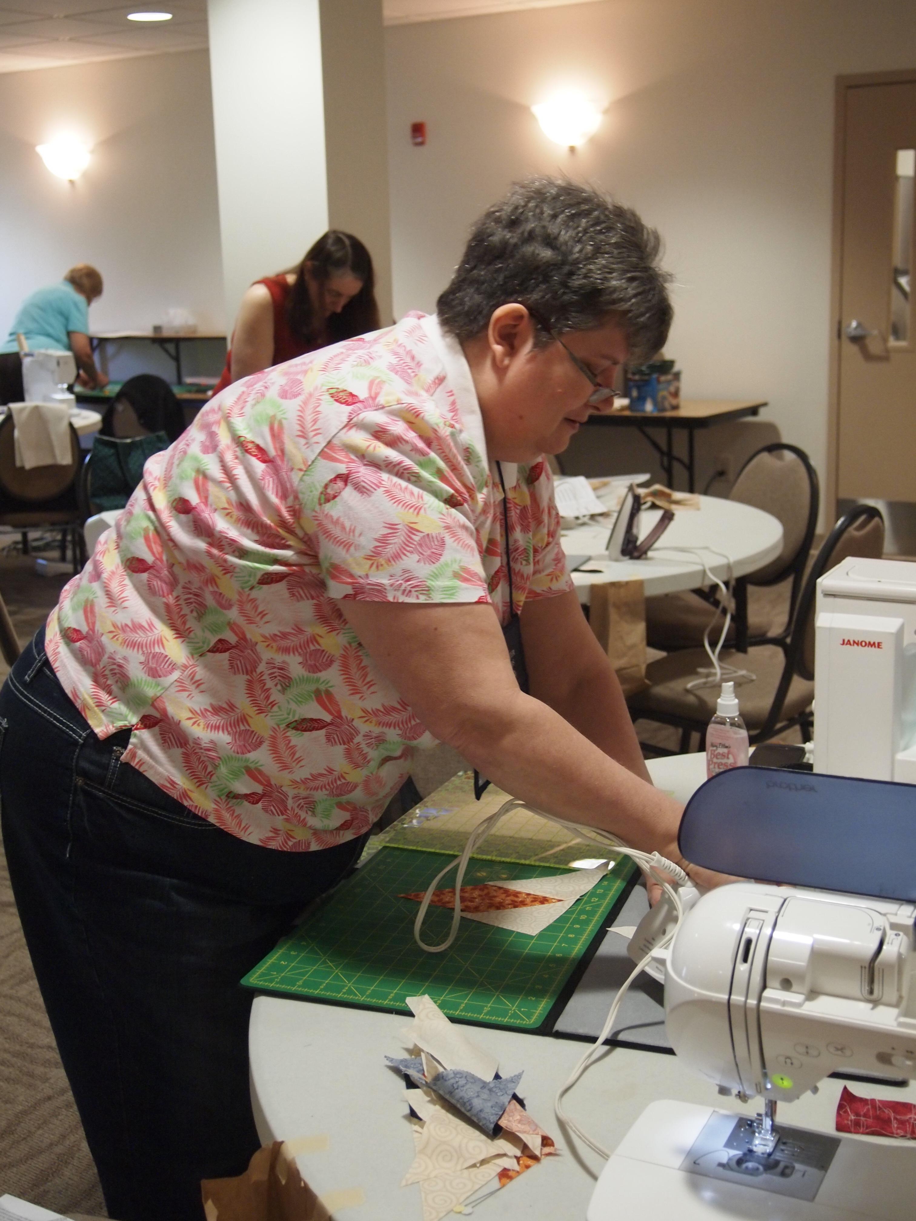Step 2 – Stitch the sections together into rows, press the seams open. Stitch the rows together to create the quilt center.
