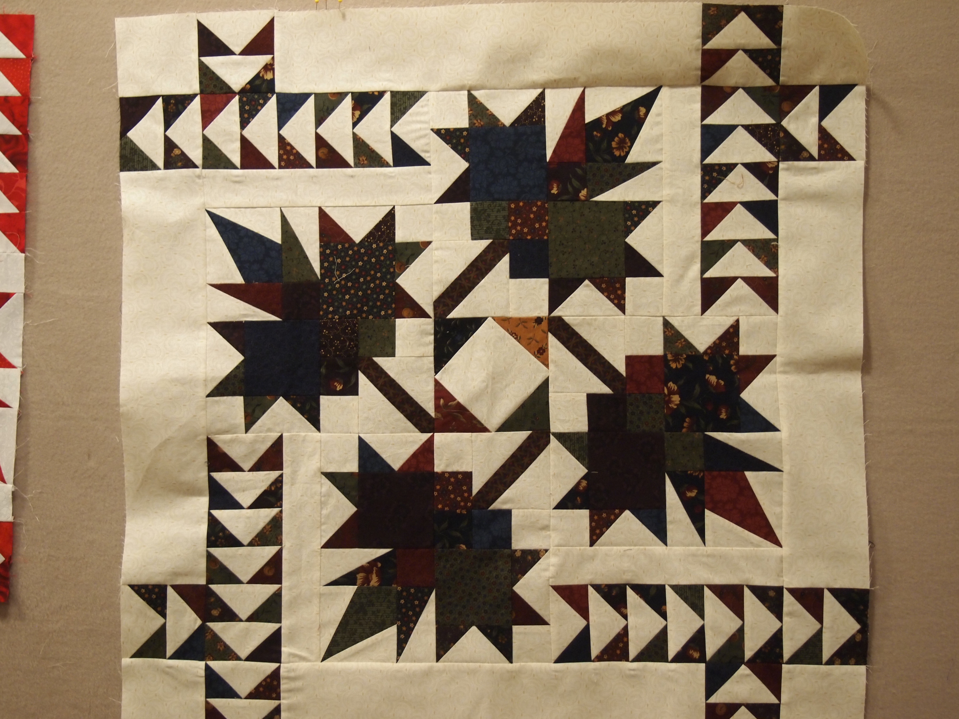Repeat the process and pop off one more corner as shown above. Center & stitch the replacement triangle, press toward the replacement triangle.