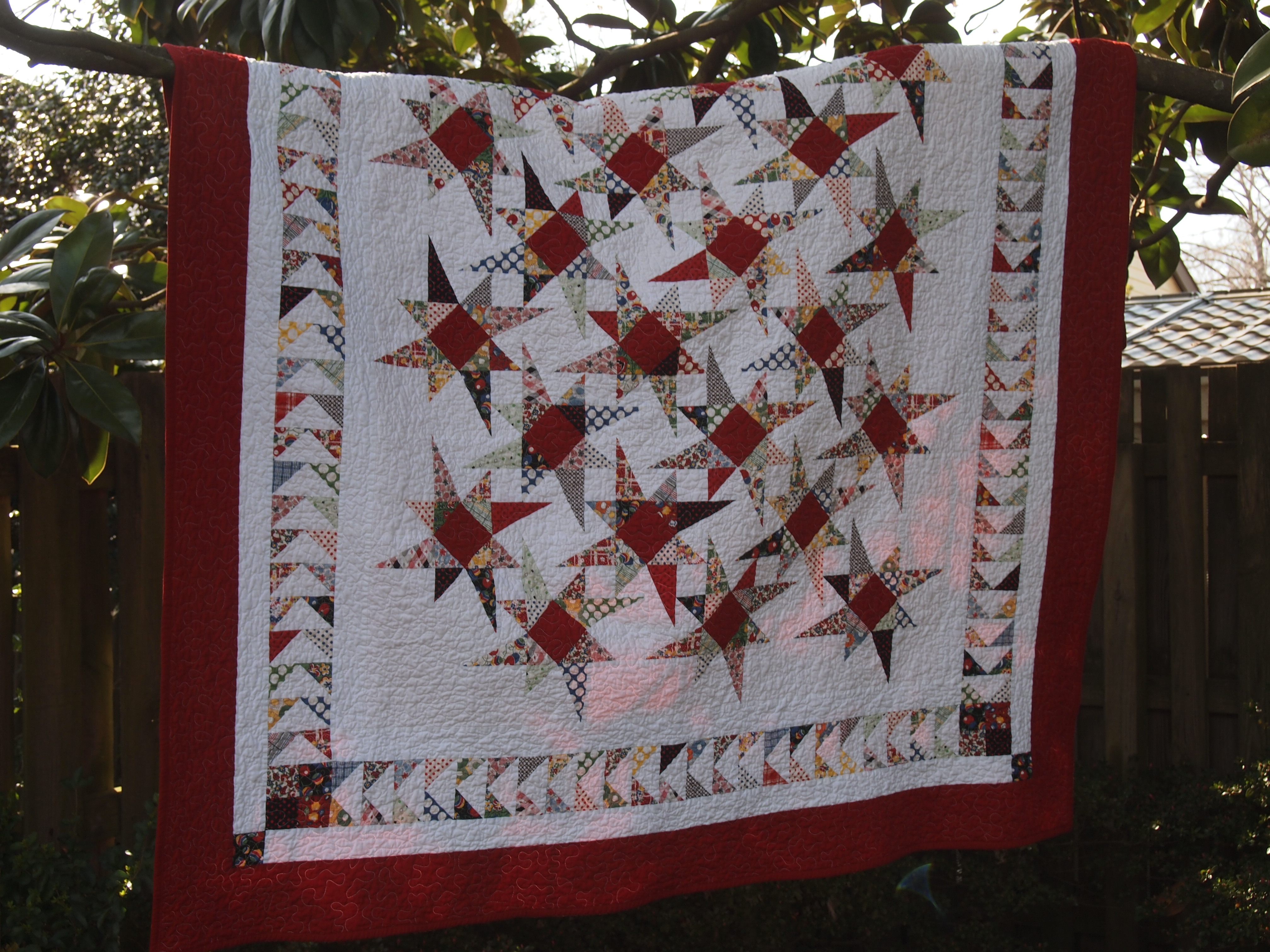 I finished it with 2 1/4″ binding cut from my left over fat quarter.