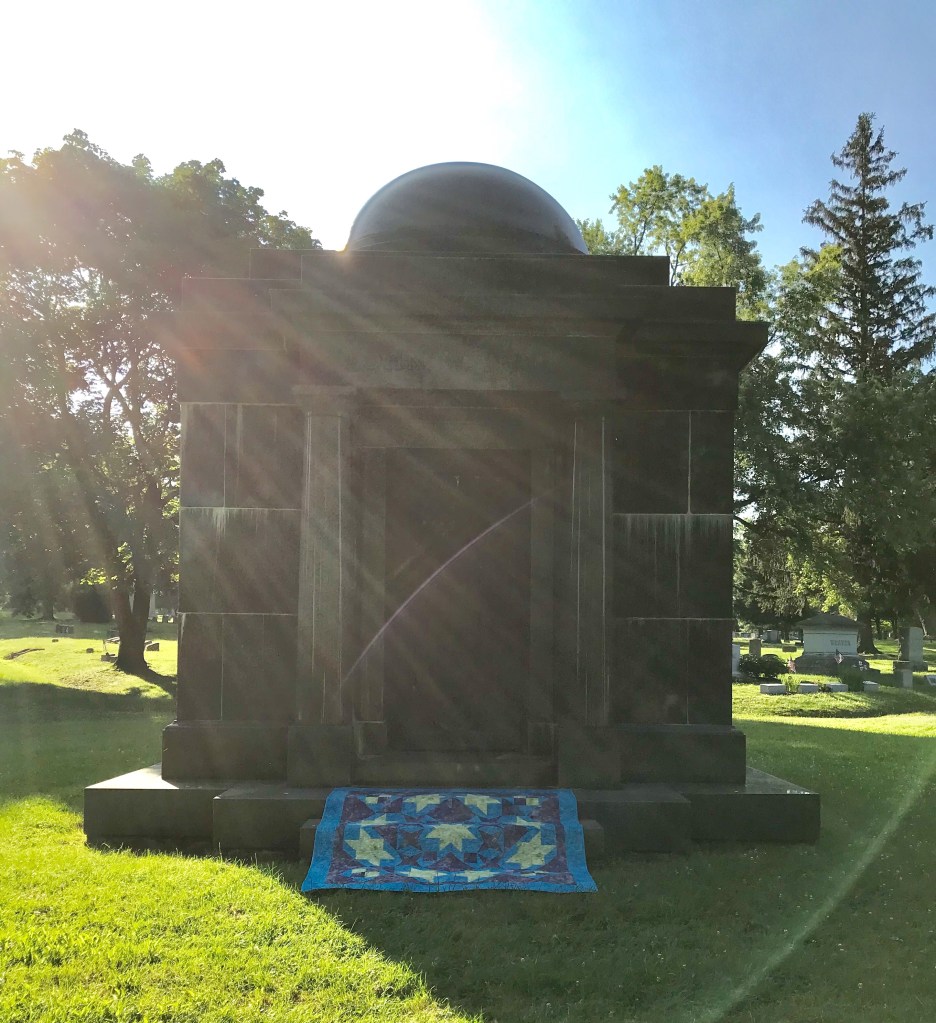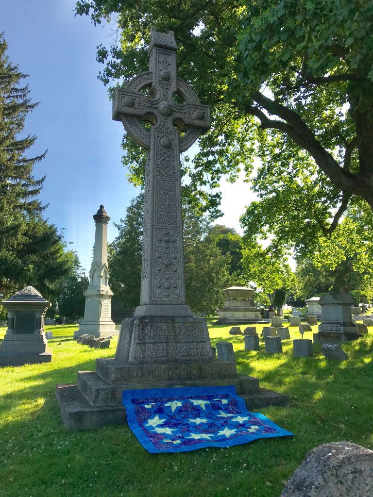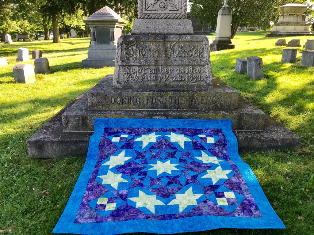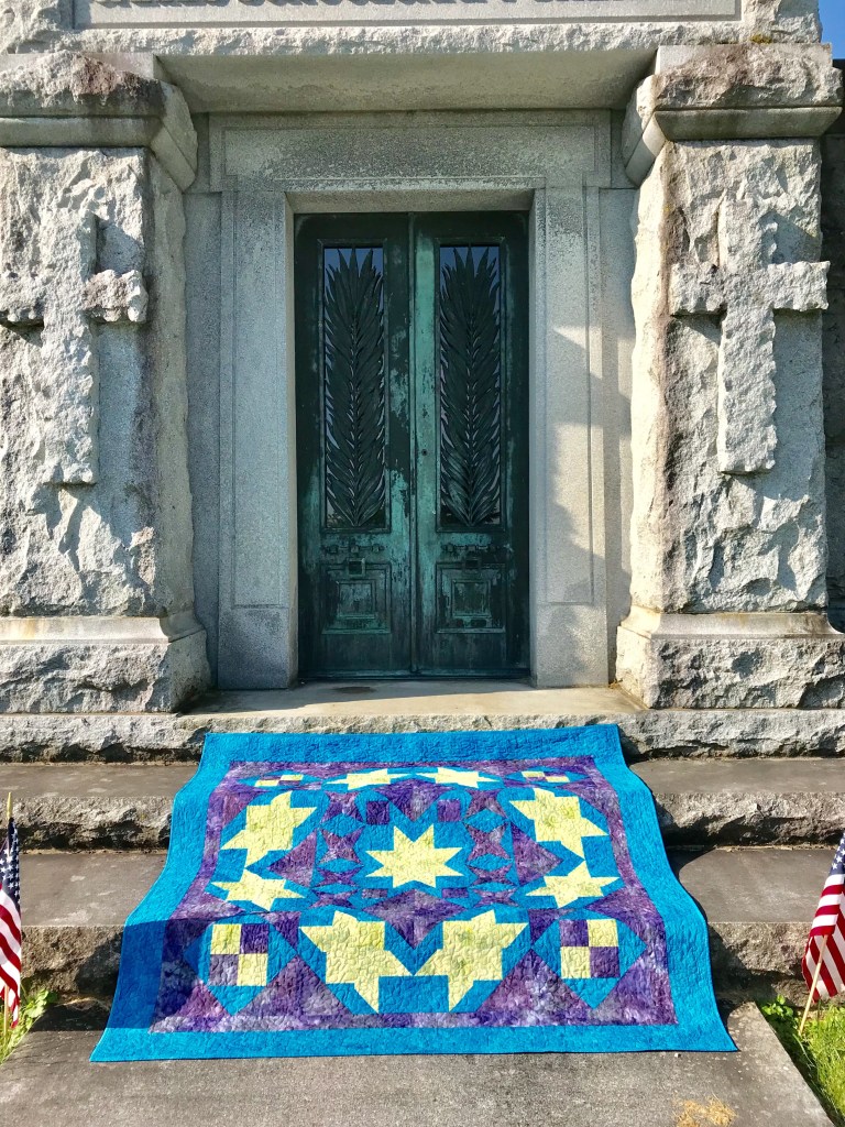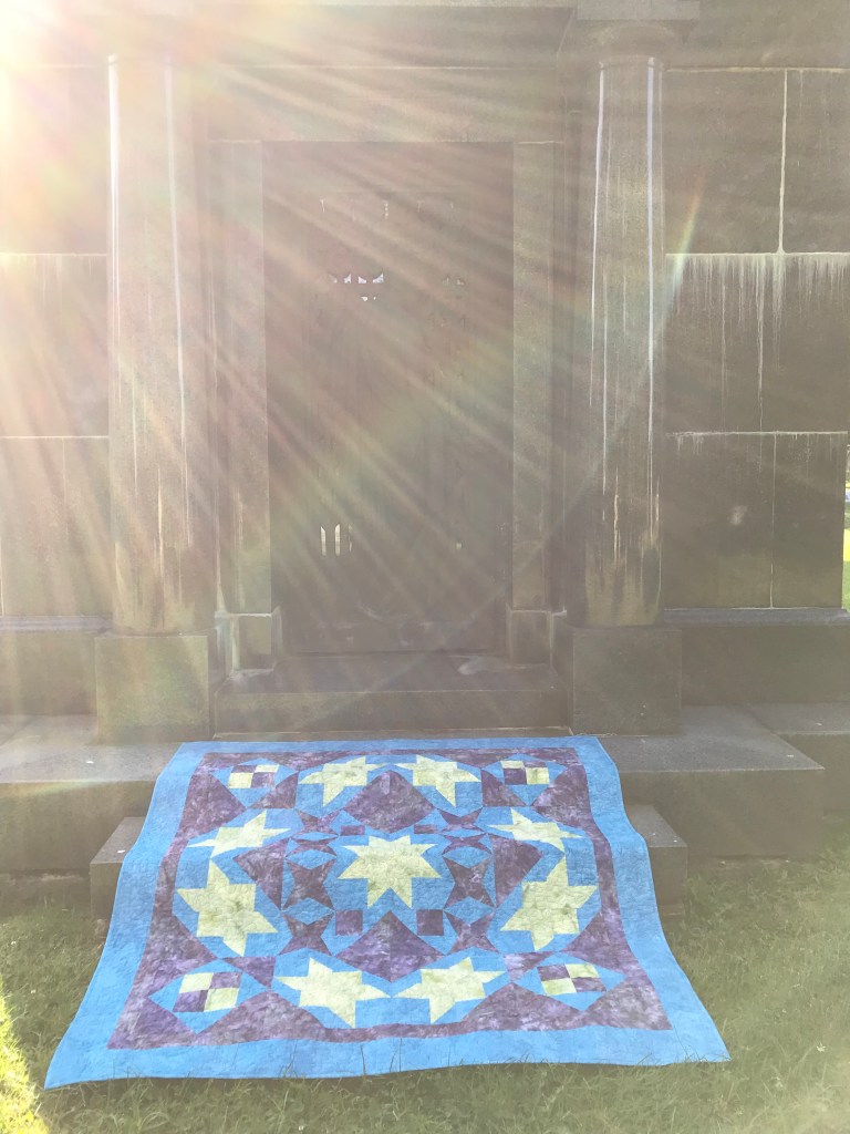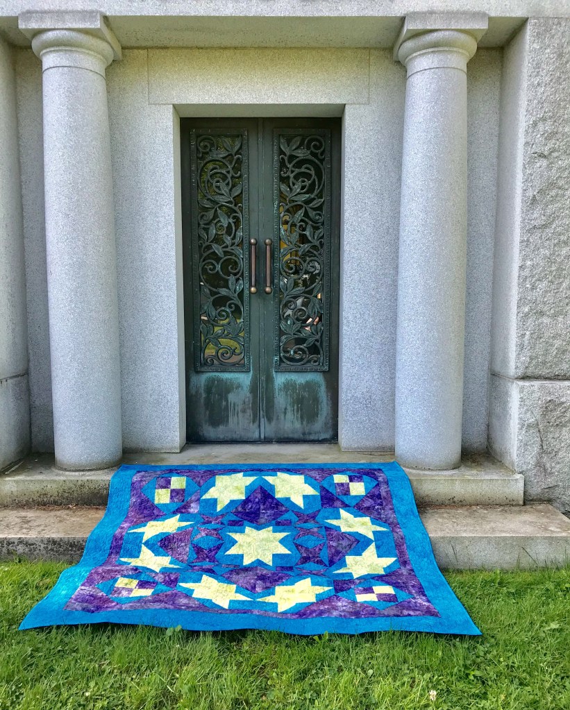 Pyramid Power Twin Size measures 51″ x 72″. Pieced with Aurifil thread and finished with Hobbs Cotton Batting.