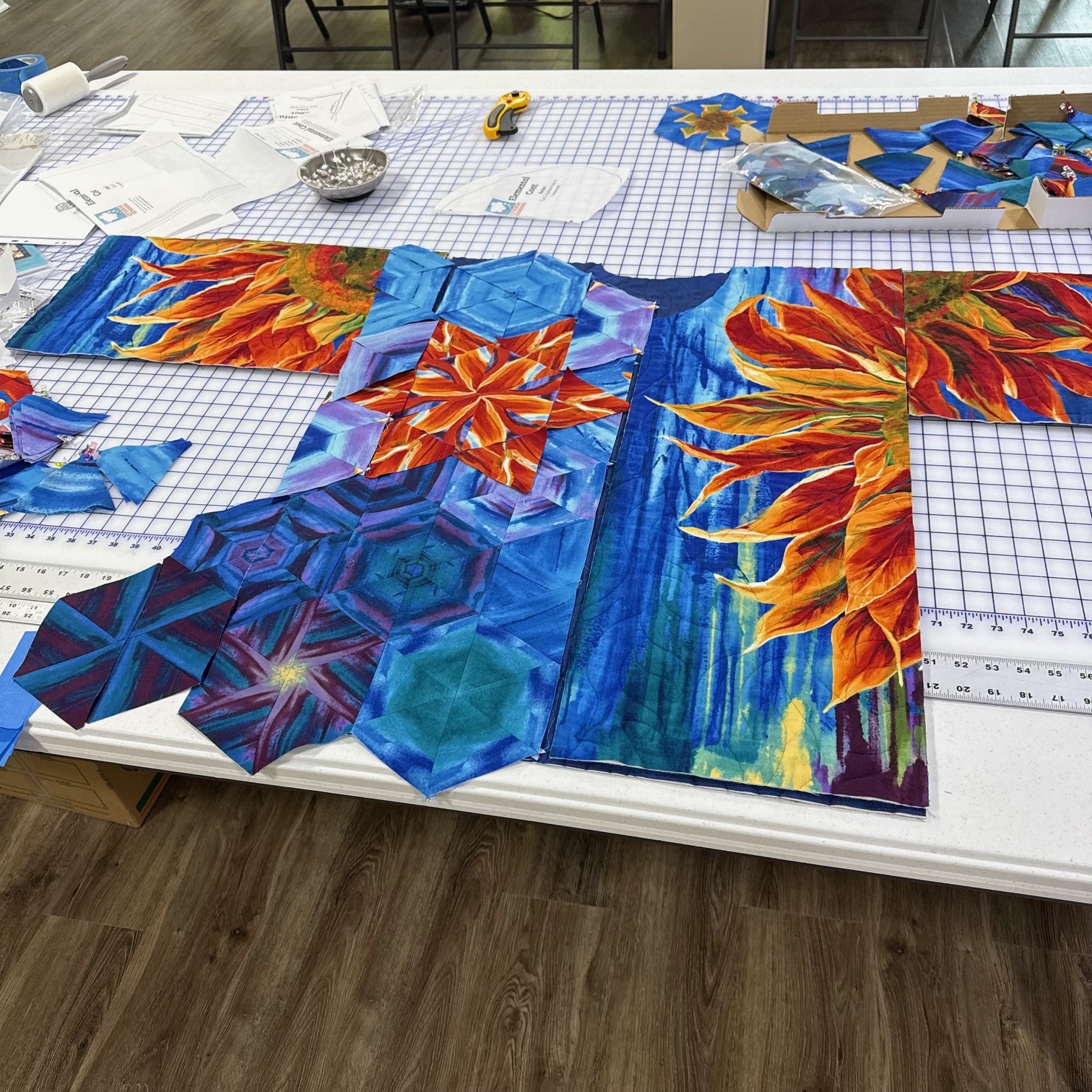 Terri is working on Steampunk Mona OBW Coat. I will start designing the quilt this week. We have new panels arriving from QT Fabrics and Lumin Fabrics.