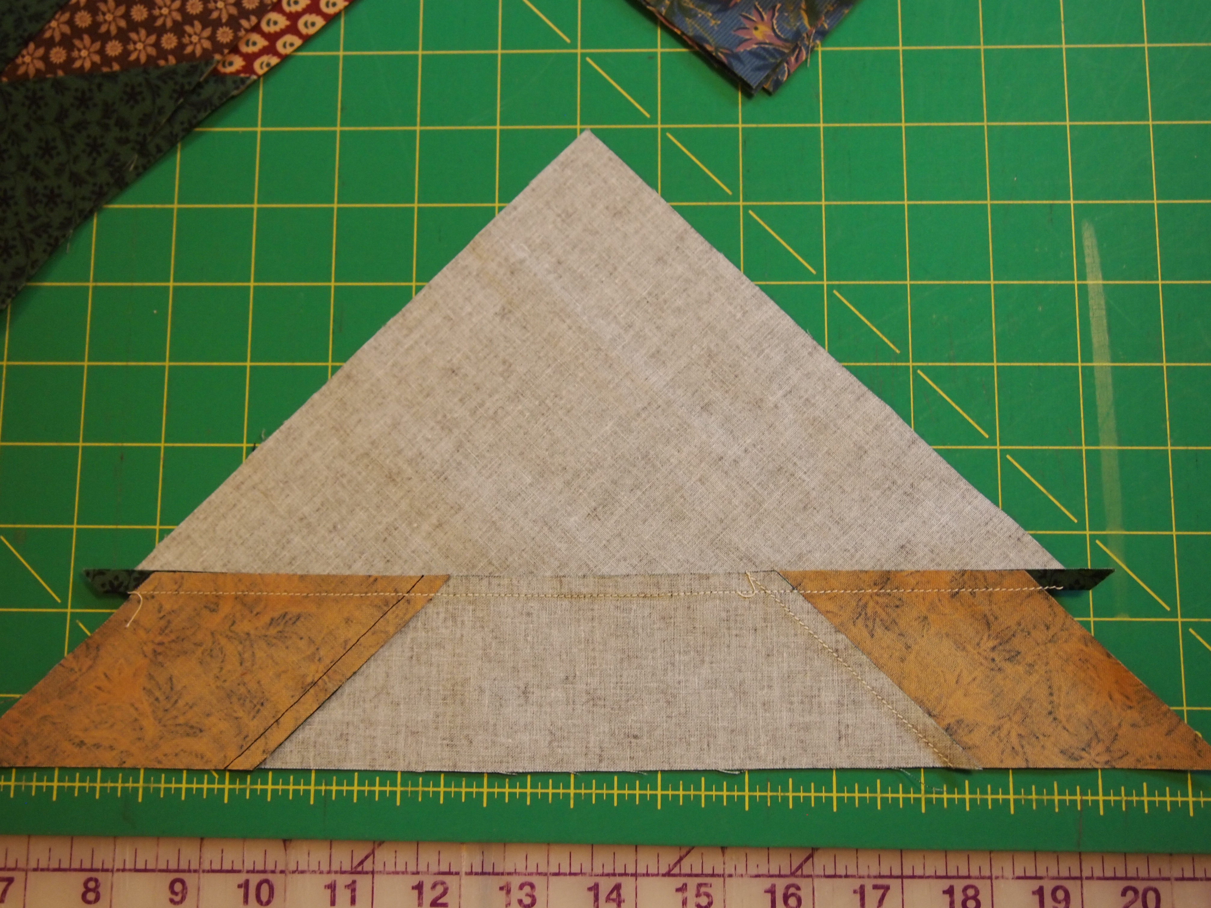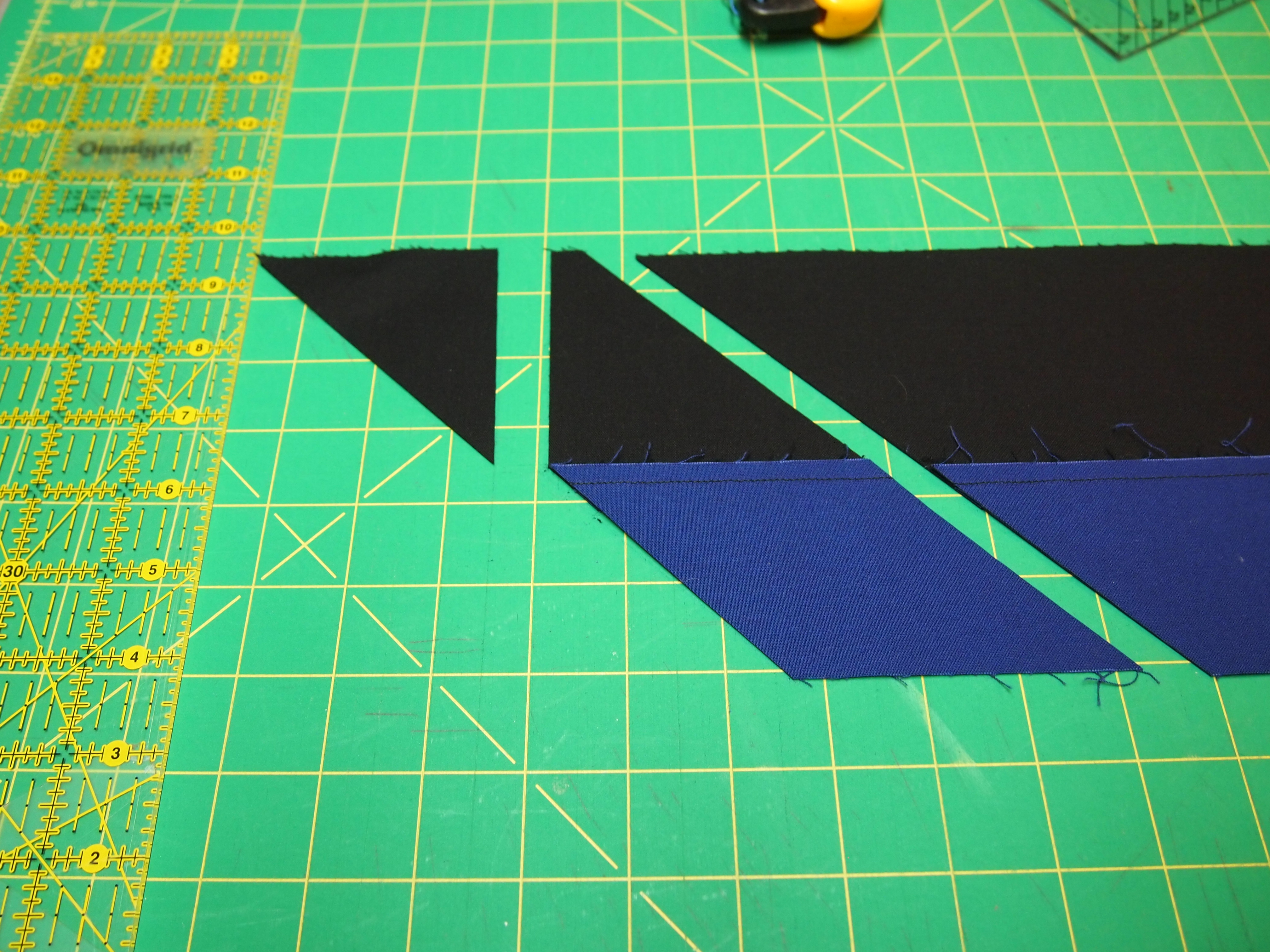 Press the seams toward the smaller triangles. One of these units will make 2 flying geese, the other will be saved to make a left slanted Quicket.