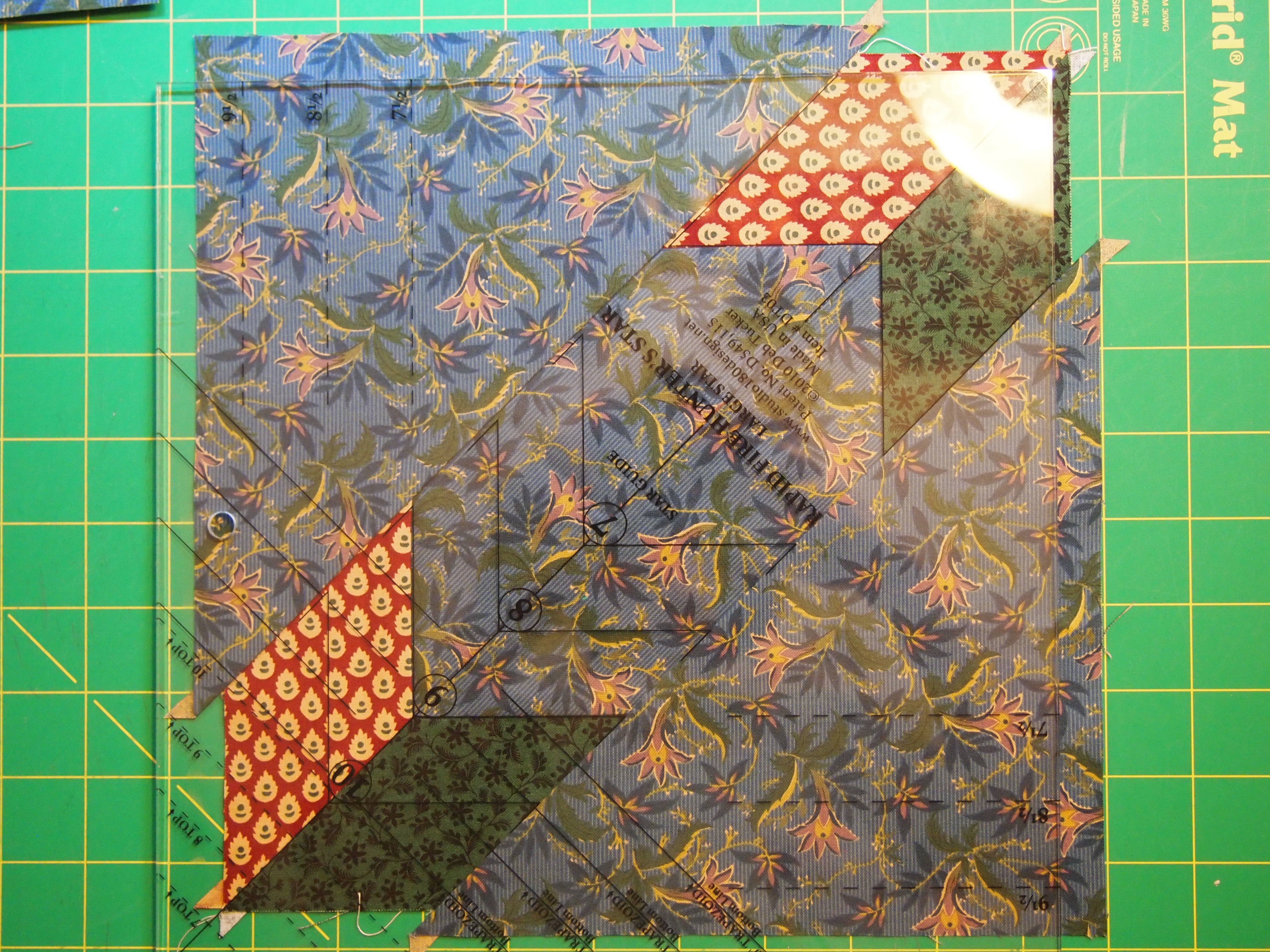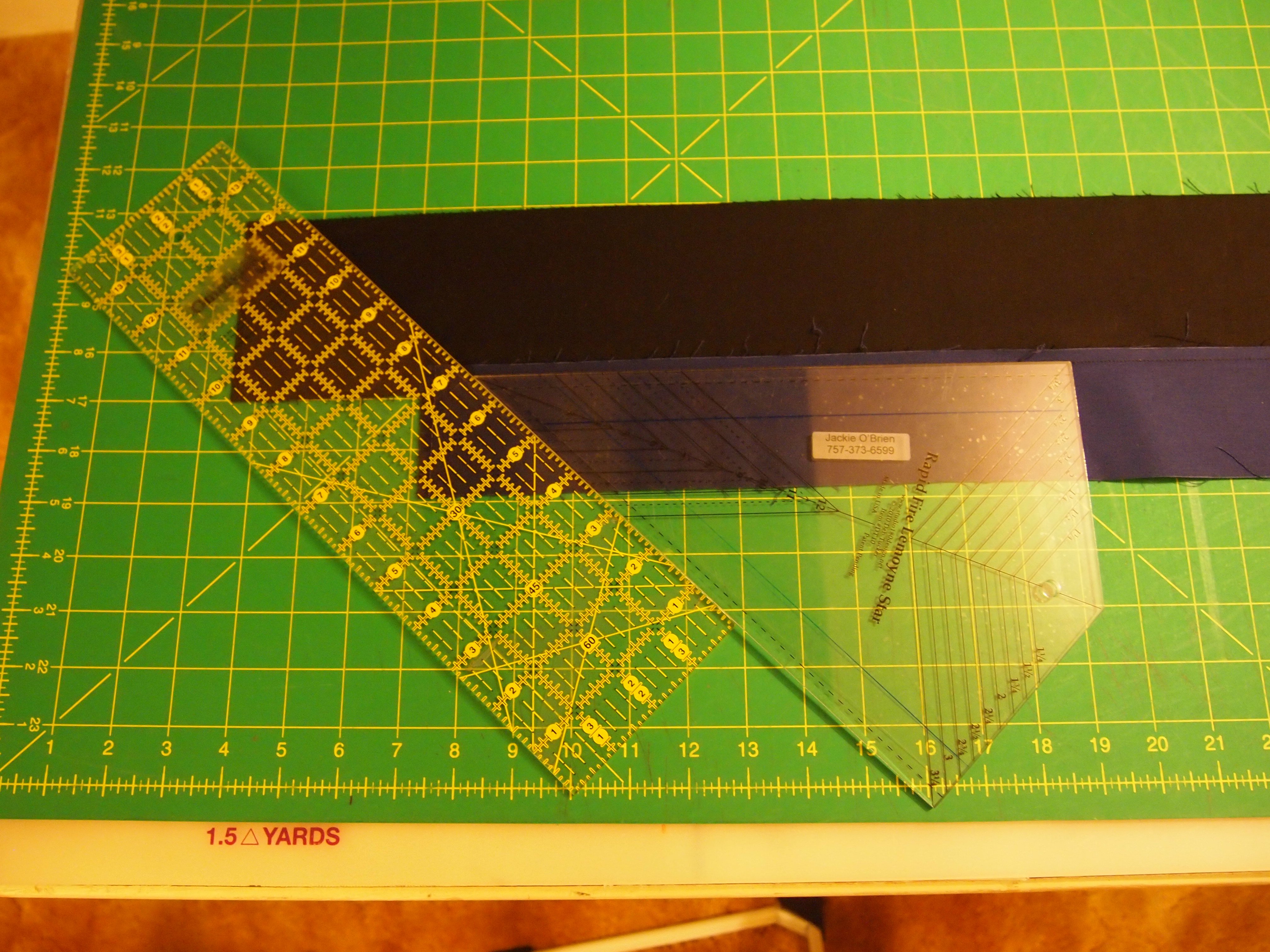 Trim the oversized HST to the desired cut size. Mine are 2 1/2″. (See the Tucker Trimmer Instructions for left hand cutting.)