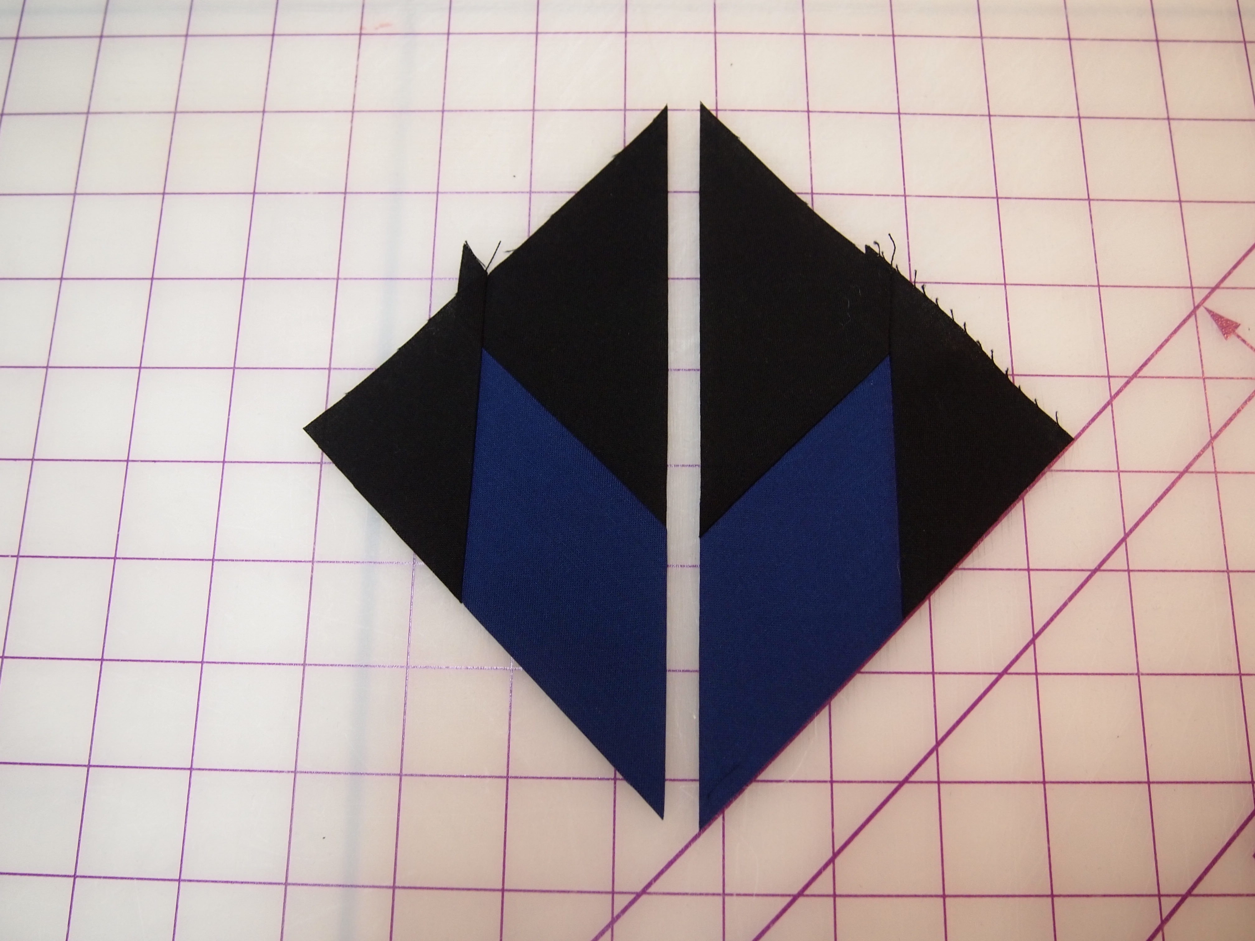 Stitch on both drawn lines, them trim between the lines on the center diagonal.