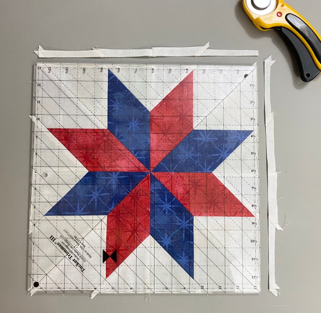 Step 7 – Cut the 1st Unit: Each Cut Should be the same measurement as the Star Strip Width (3 ¼” wide).